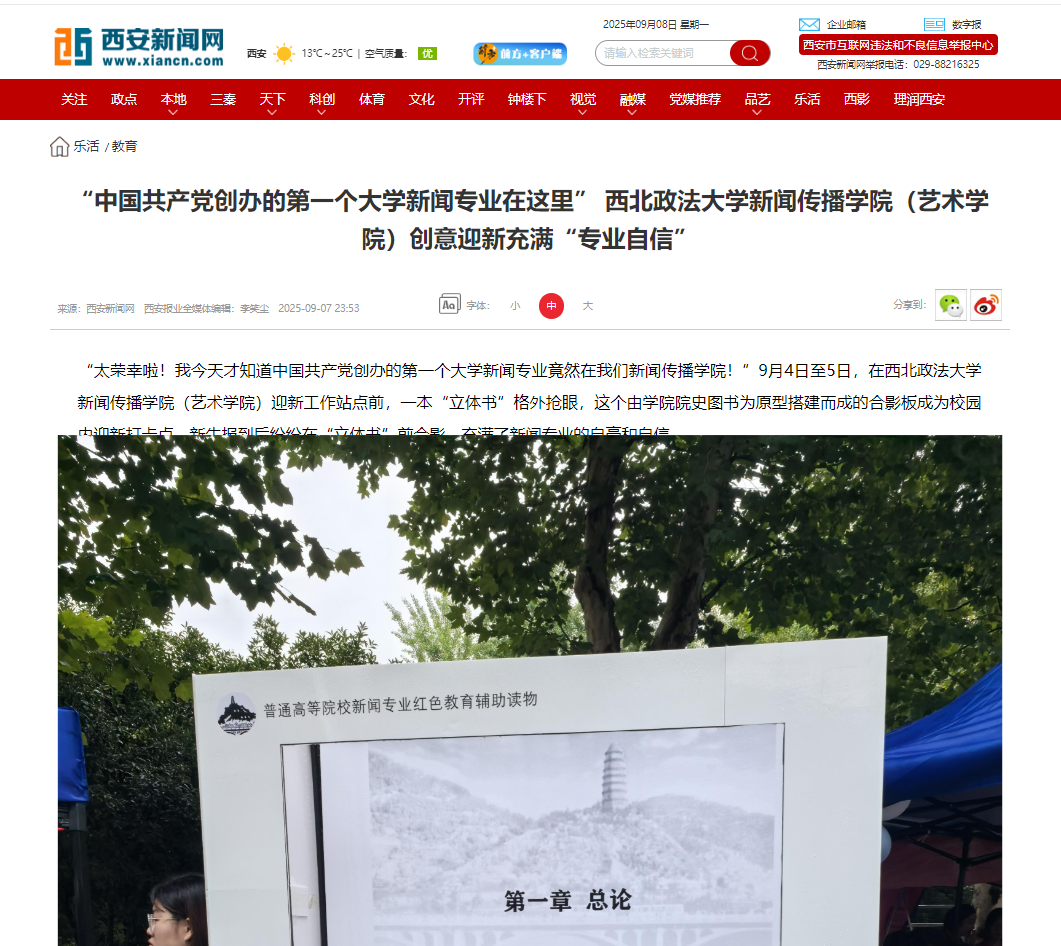 【西安新闻网】“中国共产党创办的第一个大学新闻专业在这里” 西北政法大学新闻传播学院(艺术学院)创意迎新充满“专业自信”https://www.xiancn.com/content/2025-09/07/content_7213317.htm