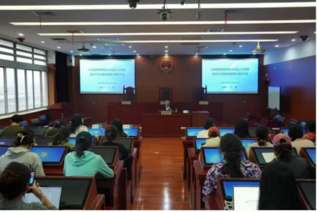 2024年11月15日下午,上海对外经贸大学法学院邀请西北政法大学原副校长、二级教授、博士生导师王瀚教授,为师生做“从战略高度推进涉外法治人才培养是涉外法治建设的重大基础工程”专题讲座。本次讲座由上海对外经贸大学法学院党委书记乔檀主持。