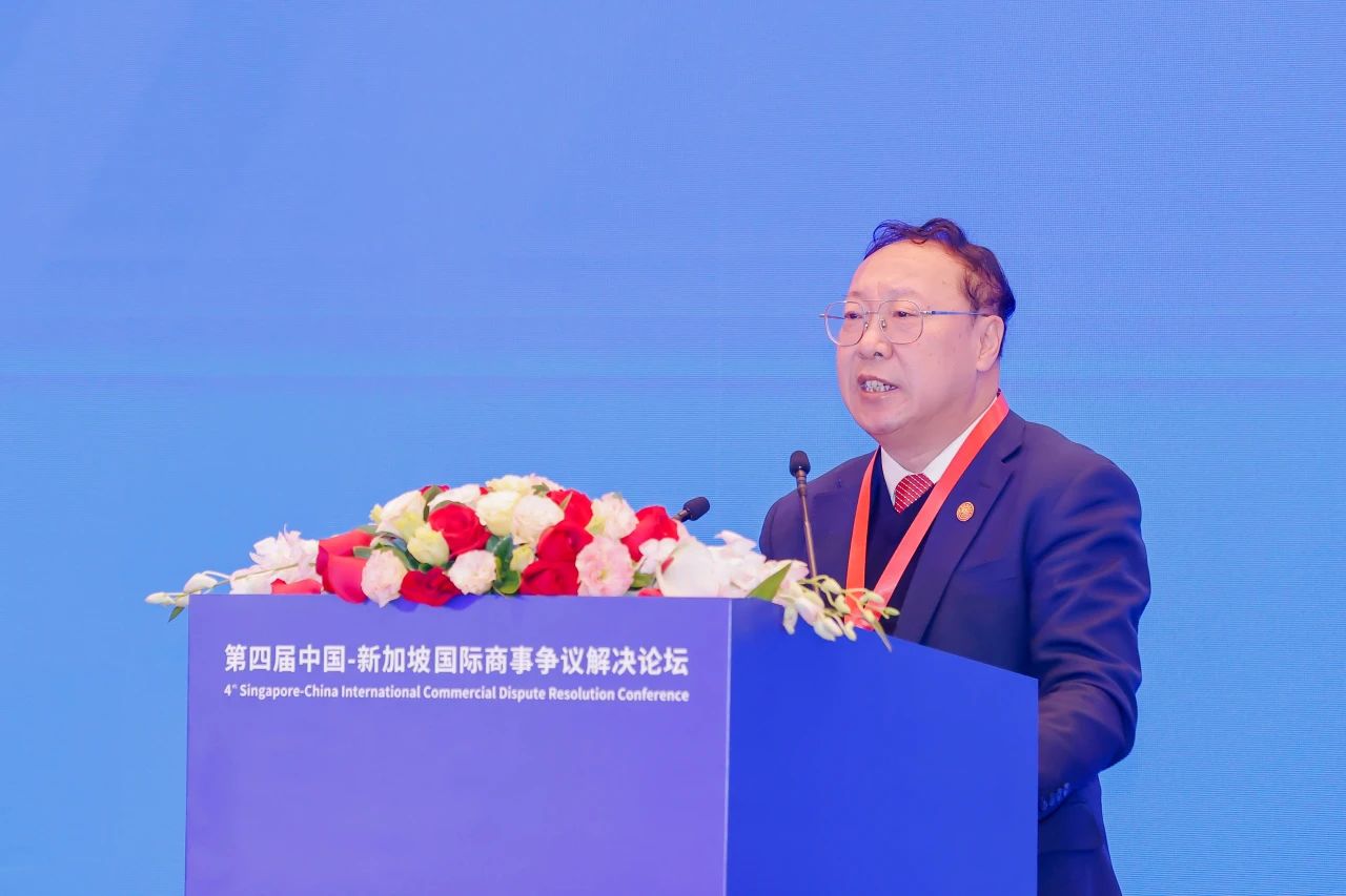 中国贸促会会长任鸿斌、新加坡文化、社区及青年部长兼律政部第二部长唐振辉、最高人民法院审判委员会副部级专职委员刘贵祥、新加坡最高法院上诉审判庭法官施奇恩出席论坛并致辞。中国贸促会副会长于健龙作总结讲话。