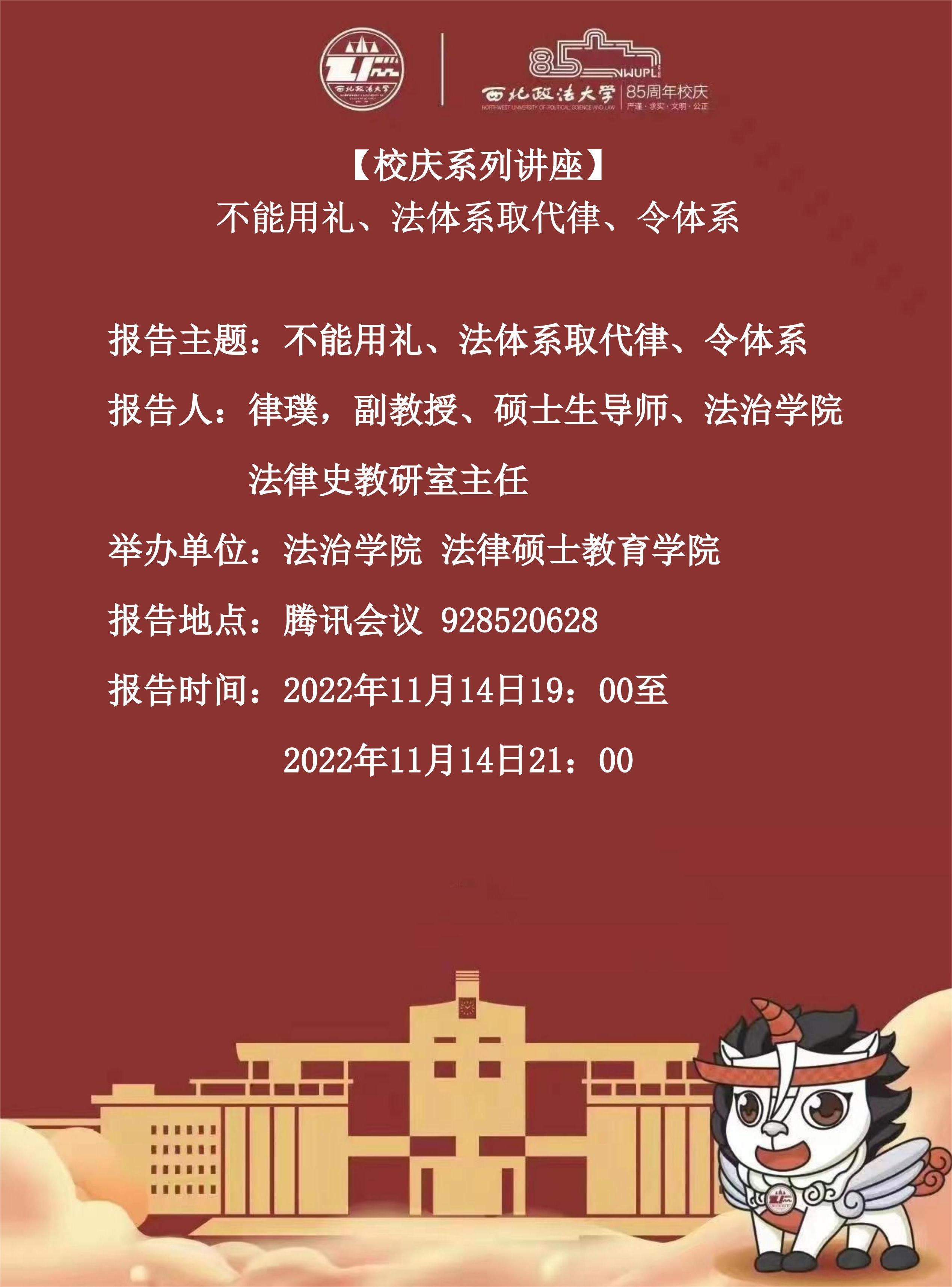 【校庆系列讲座】不能用礼、法体系取代律、令体系