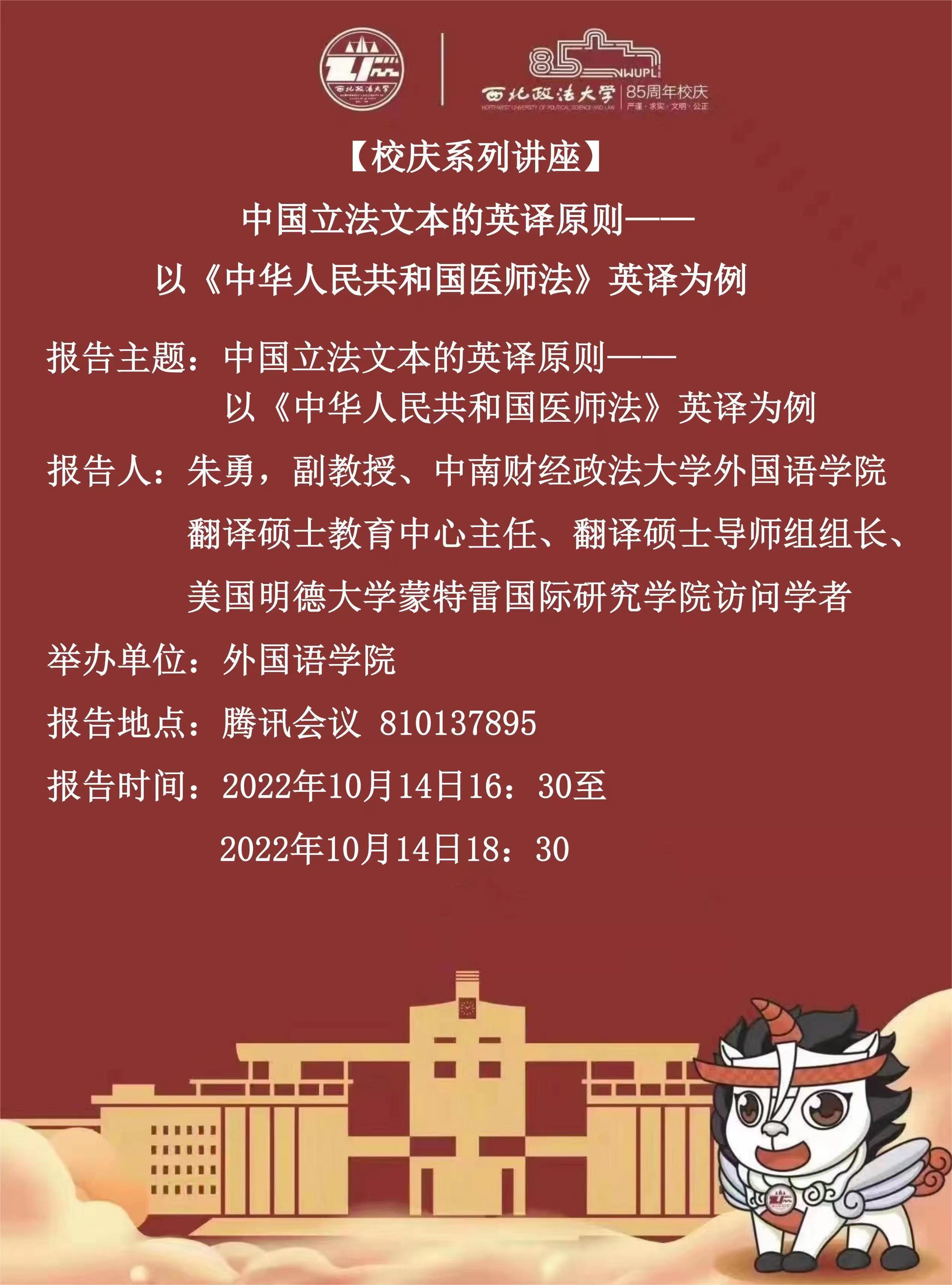 【校庆系列讲座】中国立法文本的英译原则——以《中华人民共和国医师法》英译为例