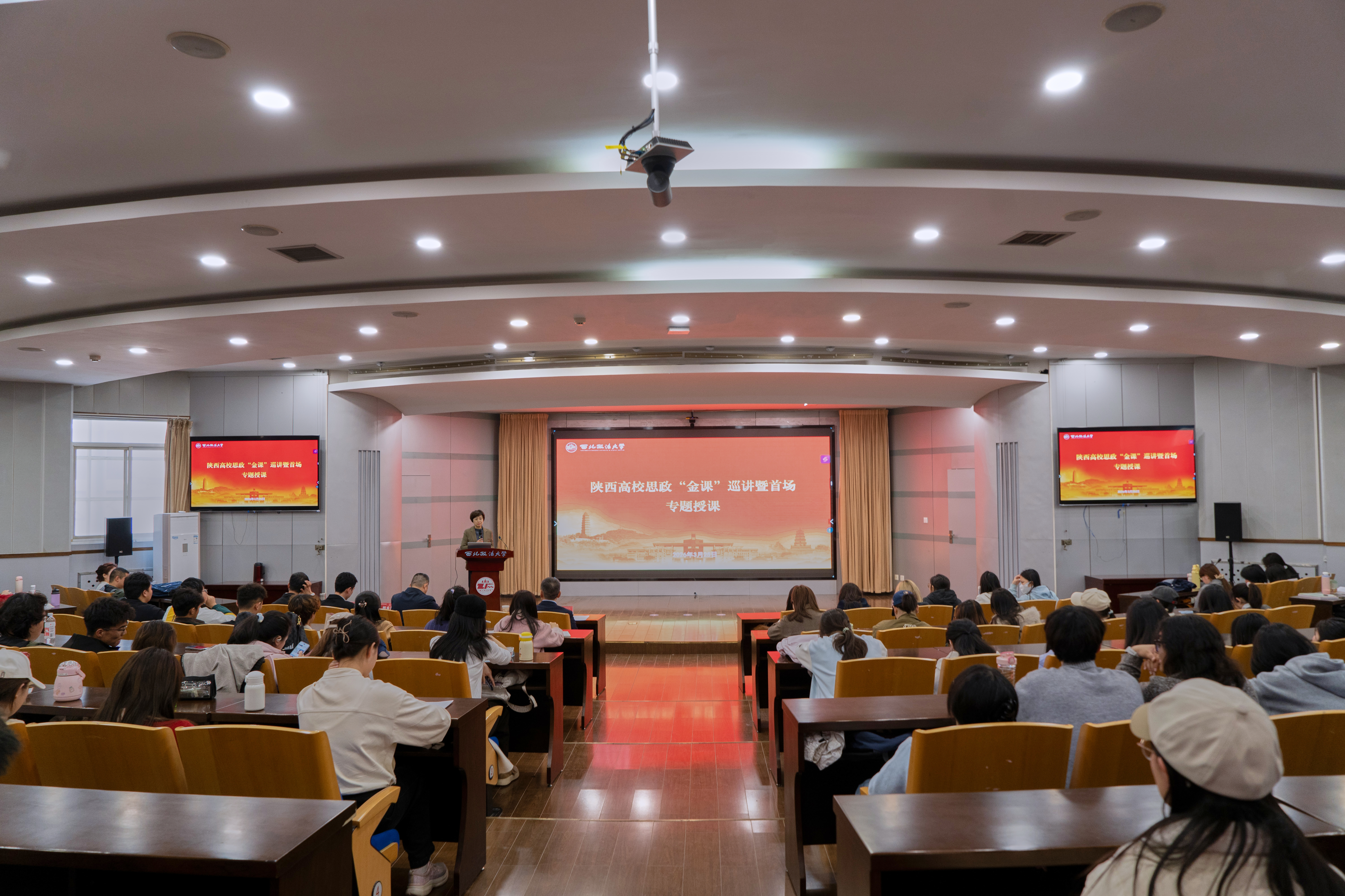 3月25日下午,陕西高校思政“金课”巡讲西北政法大学启动仪式暨首场专题授课在长安校区校务楼二楼报告厅举行,本次活动特邀陕西高校思政“金课”讲师团成员、我校马克思主义学院胡捷老师及陕西师范大学马克思主义学院杨永浦老师讲授思政“金课”。校党委委员、副校长、马克思主义学院院长马朝琦出席活动并致辞。近300名思政课教师代表和学生代表参加了此次活动。校党委委员、宣传部部长宋白主持活动。 “今天这两个主题,一个指向精神的传承,一个指向榜样的力量,共同构成了今天我们思政“金课”的精彩开篇。”马朝琦在致辞中表示,思政“金课”是落实立德树人根本任务的重要抓手,是推动思政课改革创新、提升育人实效的关键举措,希望全体思政课教师以“金课”为标杆,持续深化教学改革,把优质教学资源融入日常课堂,引导青年学子从历史中汲取奋进力量,坚定理想信念,勇担时代使命,在强国建设、民族复兴的伟大征程中书写青春答卷。 启动仪式后,两场精彩的思政“金课”依次开讲。 胡捷老师以《延安精神代代相传》为题,立足党中央在延安13年的光辉历程,深刻解读延安精神的时代价值与核心内涵。他结合红色故事与当代青年鲜活事例,生动展现延安精神穿越时空、历久弥新的强大力量,寄语在场青年从延安精神中汲取信仰养分,锤炼担当品格,厚植家国情怀,以青春奋斗践行初心使命。 杨永浦老师以《人民领袖的青春足迹》为题,通过翔实史料与感人故事,展现人民领袖在青年时期的理想追求与为民情怀,引导青年学子在时代坐标中找准人生方位,将个人理想融入民族复兴伟业。 马克思主义学院党委书记李政敏在总结讲话中表示,首场专题授课内容丰富、感染力强,既有理论深度,又有实践温度,充分展现了思政“金课”的思想引领力与育人实效。他号召全体思政课教师以金课为标杆,持续提升教学质量,勉励青年学子从红色精神中汲取奋进力量,在新时代新征程上展现青春担当。 活动开始前,两位主讲教师与我校青年思政课教师和学生代表进行了深入座谈交流。 (供稿:马克思主义学院 摄影:党委宣传部 撰稿:徐鹏 审核:郭淼)