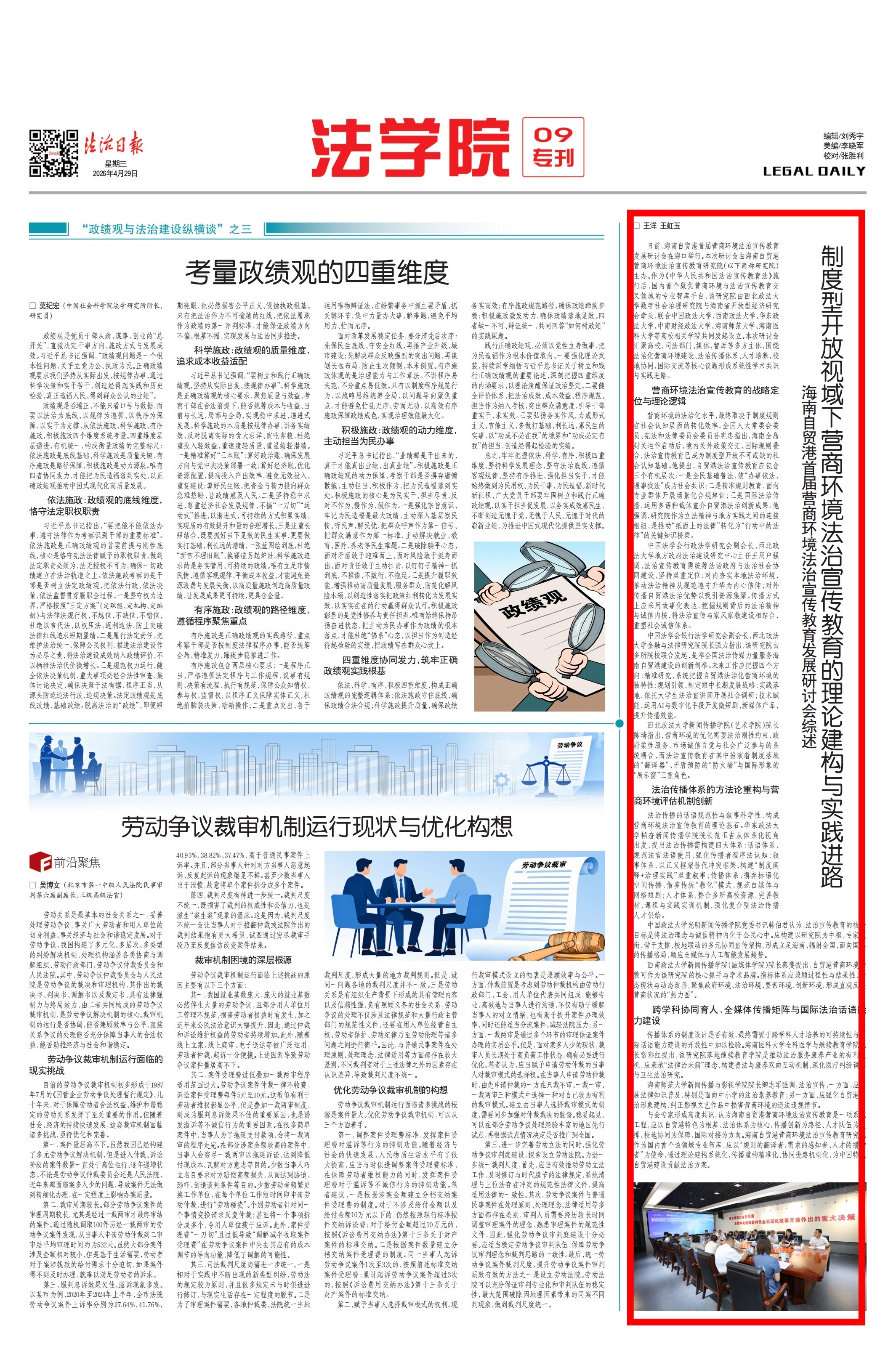 日前,海南自贸港首届营商环境法治宣传教育发展研讨会在海口举行。本次研讨会由海南自贸港营商环境法治宣传教育研究院(以下简称研究院)主办。作为《中华人民共和国法治宣传教育法》施行后,国内首个聚焦营商环境与法治宣传教育交叉领域的专业智库平台,该研究院由西北政法大学数字社会治理研究院与海南省开放型经济研究会牵头,联合中国政法大学、西南政法大学、华东政法大学、中南财经政法大学、海南师范大学、海南医科大学等高校相关学院共同发起设立。本次研讨会汇聚高校、司法部门、媒体、智库等多方主体,围绕法治化营商环境建设、法治传播体系、人才培养、校地协同、国际交流等核心议题形成系统性学术共识与实践进路。 营商环境法治宣传教育的战略定位与理论逻辑 营商环境的法治化水平,最终取决于制度规则在社会认知层面的转化效率。全国人大常委会委员、宪法和法律委员会委员孙宪忠指出,海南全岛封关运作启动后,境内关外政策交汇、国际规则叠合,法治宣传教育已成为制度型开放不可或缺的社会认知基础。他提出,自贸港法治宣传教育应包含三个有机层次:一是全民基础普法,使“办事依法、遇事找法”成为社会共识;二是精准规则教育,面向专业群体开展场景化合规培训;三是国际法治传播,运用多语种载体宣介自贸港法治创新成果。他强调,研究院作为立法精神与地方实践之间的连接枢纽,是推动“纸面上的法律”转化为“行动中的法律”的关键知识桥梁。 中国法学会行政法学研究会副会长、西北政法大学地方政府法治建设研究中心主任王周户强调,法治宣传教育需统筹法治政府与法治社会协同建设,坚持双重定位:对内夯实本地法治环境,推动法治精神从规范遵守升华为内心信仰;对外传播自贸港法治优势以吸引资源集聚。传播方式上应采用故事化表达,挖掘规则背后的法治精神与诚信内核,将法治宣传与家风家教建设相结合,重塑社会诚信体系。 中国法学会银行法学研究会副会长、西北政法大学金融与法律研究院院长强力指出,该研究院由多所院校联合发起,是举全国法治传媒力量服务海南自贸港建设的创新创举。未来工作应把握四个方向:精准研究,系统把握自贸港法治化营商环境的独特性;规划引领,制定短中长期发展战略;实践落地,依托大学生法治宣讲团开展社会调研;技术赋能,运用AI与数字化手段开发微短剧、新媒体产品,提升传播效能。 西北政法大学新闻传播学院(艺术学院)院长陈琦指出,营商环境的优化需要法治刚性约束、政府柔性服务、市场诚信自觉与社会广泛参与的系统耦合,而法治宣传教育在其中扮演着制度落地的“翻译器”、矛盾预防的“防火墙”与国际形象的“展示窗”三重角色。 法治传播体系的方法论重构与营商环境评估机制创新 法治传播的话语规范性与叙事科学性,构成营商环境法治宣传教育的理论基石。华东政法大学韬奋新闻传播学院院长范玉吉从体系化视角出发,提出法治传播需构建四大体系:话语体系,规范法言法语使用,强化传播者程序法认知;叙事体系,以正义框架替代冲突框架,构建“制度阐释+治理实践”双重叙事;传播体系,摒弃标语化空间传播,借鉴传统“教化”模式,规范自媒体与网络短剧;人才体系,整合多所高校资源,完善教材、课程与实践实训机制,强化复合型法治传播人才供给。 中国政法大学光明新闻传播学院党委书记韩伯君认为,法治宣传教育的核心目标是将法治理念与诚信精神内化于公民心中。应构建以研究院为中枢,专家领衔、骨干支撑、校地联动的多元协同宣传架构,形成立足海南、辐射全国、面向国际的传播格局,顺应全媒体与人工智能发展趋势。 西南政法大学新闻传播学院(融媒体学院)院长蔡斐提出,自贸港营商环境指数可作为该研究院的核心抓手与学术品牌。指标体系应兼顾过程性与结果性、静态现状与动态改善,聚焦政府环境、法治环境、要素环境、创新环境,形成直观反映营商状况的“热力图”。 跨学科协同育人、全媒体传播矩阵与国际法治话语能力建设 传播体系的制度设计是否有效,最终需置于跨学科人才培养的可持续性与国际话语能力建设的开放性中加以检验。海南医科大学全科医学与继续教育学院院长常彩红提出,该研究院落地继续教育学院是推动法治服务康养产业的有利契机,应秉承“法律治未病”理念,构建普法与康养双向互动机制,深化医疗纠纷调解与卫生法治研究。 海南师范大学新闻传播与影视学院院长卿志军强调,法治宣传,一方面,应开展法律知识普及,特别是面向中小学的法治素养教育;另一方面,应强化自贸港法治形象建构,纠正影视文艺作品中损害营商环境的违法违规情节。 与会专家形成高度共识,认为海南自贸港营商环境法治宣传教育是一项系统工程,应以自贸港特色为根基、法治体系为核心、传播创新为路径、人才队伍为支撑、校地协同为保障、国际对接为方向。海南自贸港营商环境法治宣传教育研究院作为国内首个该领域专业智库,应以“规则的翻译者、需求的感知者、人才的播种者”为使命,通过理论建构系统化、传播重构精准化、协同进路机制化,为中国特色自贸港建设贡献法治方案。 【法治日报】王洋 王虹玉:制度型开放视域下营商环境法治宣传教育的理论建构与实践进路 海南自贸港首届