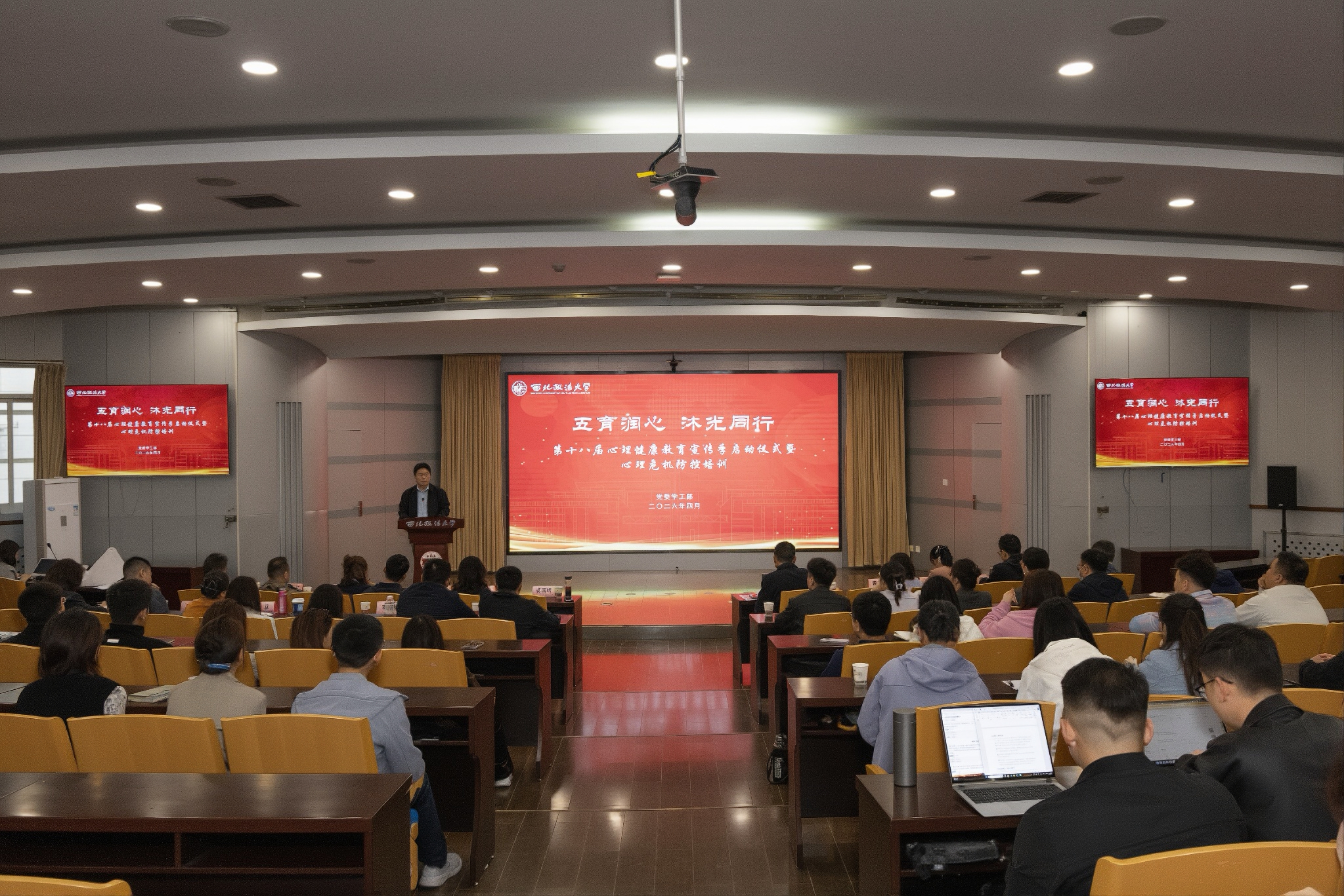 4月8日上午,我校第十八届心理健康教育宣传季启动仪式暨心理危机专题培训活动在长安校区举行。校党委副书记郭武军出席启动仪式并讲话,各学院党委副书记、全体专兼职辅导员及班级心理委员代表参加活动。党委学工部(武装部)部长、学生处处长蒋国纲主持启动仪式。 郭武军指出,做好心理健康教育工作,对学生全面成长、学校人才培养、社会和谐稳定都具有重要意义。他要求全体学工干部,一要提高站位,强化系统思维,工作中要提高闭环管理意识,从被动应对转向主动预防,筑牢学生生命安全防线;二要注重实效,健全长效机制,推动心理育人融入思想政治教育、日常管理和校园文化全过程,加强家校联动与医校合作,构建全员全过程全方位心理育人格局,切实提升心理育人质量;三要深化校院协同,鼓励创新实践,借鉴品牌活动经验,打造接地气、有实效的特色品牌,善用贴近学生兴趣的传播方式,扩大心理健康教育辐射效应。 校团委书记、学工部副部长秦音对第十八届心理健康教育宣传季系列活动进行安排部署。学生代表集体宣誓,共同承诺关注心理健康,树立阳光心态。 党委学工部(武装部)副部长、学生处副处长赵智勇以“校园心理危机干预实务培训”为题,就心理危机的识别与排查、谈心谈话技巧、重点关注学生的日常教育管理、家校沟通技巧等内容进行详细讲解,为守护校园心理健康防线增添了一份坚实的保障。 (供稿:党委学工部(武装部、学生处) 撰稿:刘一辉 审核:蒋国纲)