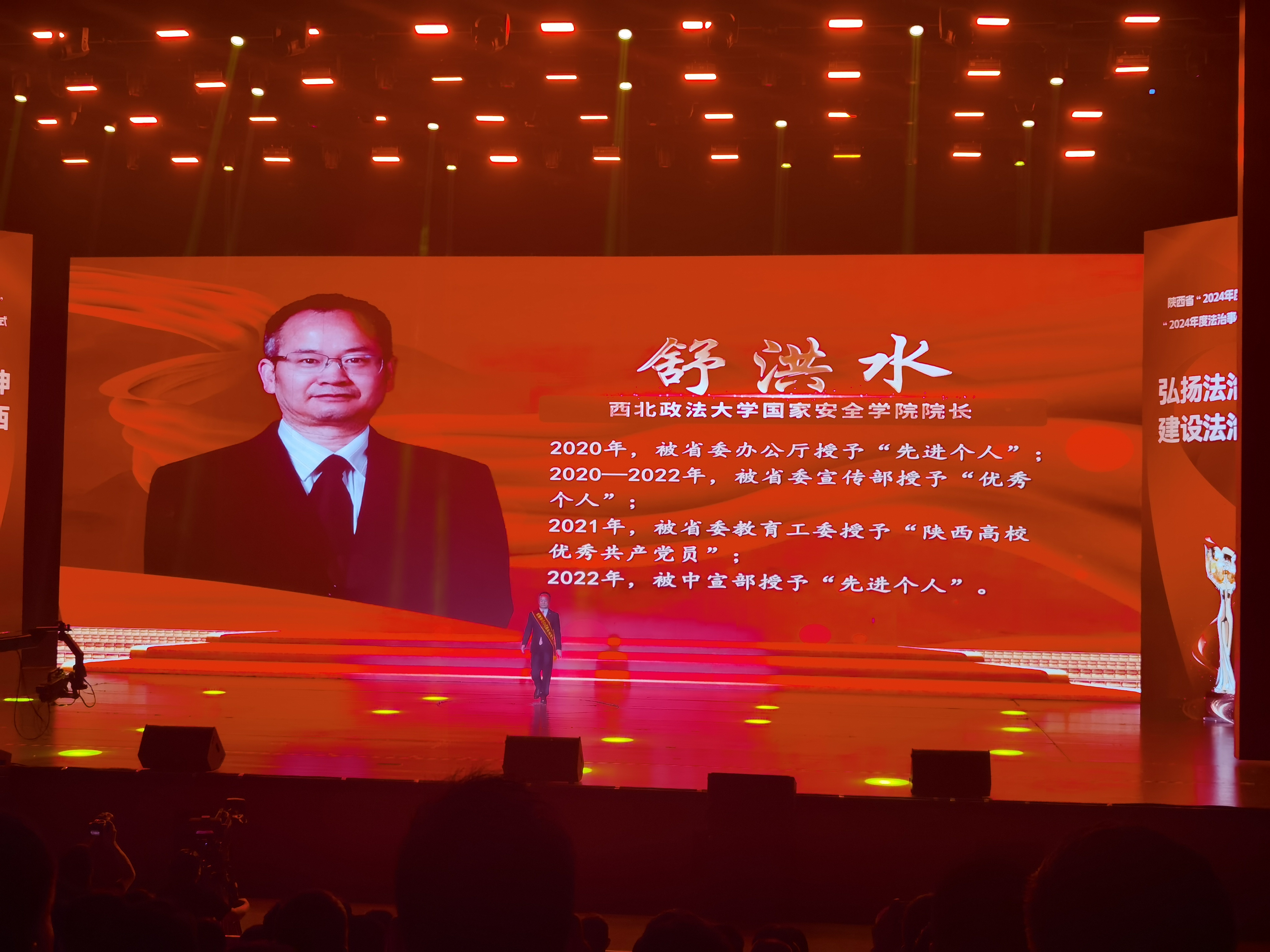 12月4日上午,我校在长安校区图书馆一楼学术报告厅举行第十二届国家宪法日“宪法宣誓”仪式暨“宪法晨读”活动。副校长孙昊亮出席,教务处处长李大勇主持活动。 活动分两个阶段进行。第一阶段,全体参会师生观看了国家宪法日宣传片,在经济学院2024级卫文斌同学的带领下,郑重宣誓:“忠于中华人民共和国宪法,维护宪法权威,履行法定职责,忠于祖国、忠于人民,恪尽职守、廉洁奉公,接受人民监督,为建设富强民主文明和谐美丽的社会主义现代化强国努力奋斗!”;第二阶段,全体参会人员同步线上参与全国青少年普法网络直播,进行线上宪法晨读。 通过本次宪法宣誓仪式及宪法晨读活动,广大师生深入了解宪法精髓,大力弘扬了宪法精神与社会主义法治精神,从中汲取伟大民族精神的力量,增强法律意识,提升法律素养。充分调动了同学们学习宪法的积极性,有效提高了学生宪法知识的储备量,使同学们对宪法精神有了更深层次的领悟。今后,学校将持续组织开展形式多样、内容丰富的宪法宣传活动,持续深入开展宪法宣传与法治教育,实现“立德树人、德法兼修、学思践悟、知行合一”的实践教学目标,营造“多层次、多元化、内容丰富、特色鲜明”的校园法治文化氛围。 党政办、党委宣传部、学工部、研工部、教师工作部、校团委、教务处等职能部门负责人,各学院学生工作负责人和全校200余名学生代表参加活动。 (供稿:教务处 撰稿:殷晓明 审核:李大勇)