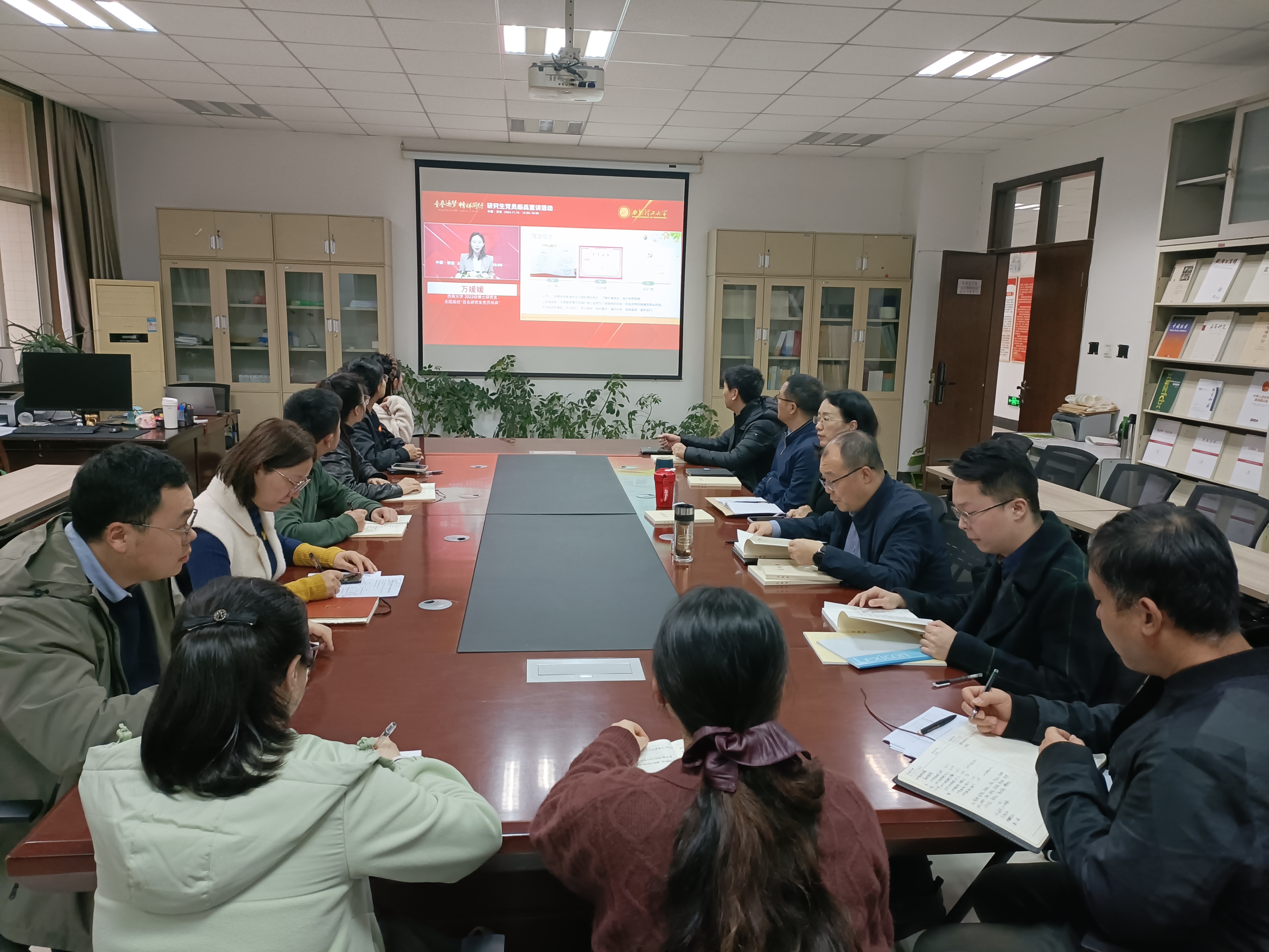 4月22日,图书馆党总支理论学习中心组(扩大)在长安校区图书馆召开学习会议,中心组全体成员参加,党总支书记翁晓磊主持会议。 会议传达学习了习近平总书记在3月31日中共中央政治局会议、中央周边工作会议上的重要讲话精神,学习了《习近平关于加强党的作风建设论述摘编》《习近平关于力戒形式主义官僚主义重要论述摘编》部分篇目与《求是》杂志发表的习近平总书记《朝着建成科技强国的宏伟目标奋勇前进》《加快建设文化强国》等重要文章。学习了教育系统违纪违法典型案例警示录及近期学校重要文件精神。中心组成员围绕“严作风、强教风、优学风”主题,结合工作实际进行研讨交流。 会议要求,全体党员干部要进一步提高政治站位,统一思想、凝聚共识,深入学习领会习近平总书记关于加强党的作风建设的重要论述和中央八项规定及其实施细则精神,对标对表中央八项规定及其实施细则精神和学校相关制度文件,一体推进学查改,确保学有质量、查有力度、改有成效。要以立德树人为己任,统筹推进,谋划全局,干事创业,提高工作效率和服务质量,切实解决师生群众“急难愁盼”问题,以实际行动开创图书馆、门诊部事业发展新局面。 (供稿:图书馆党总支 撰稿:娄佳 审核:翁晓磊)