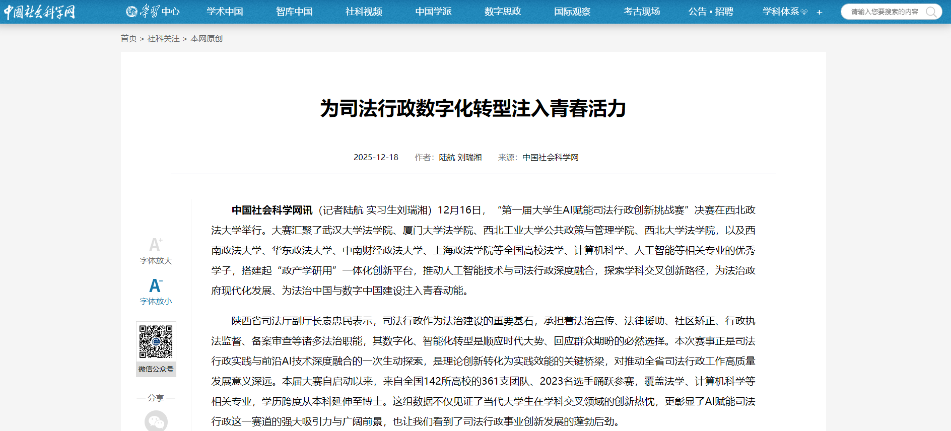 【中国社会科学网】为司法行政数字化转型注入青春活力 https://www.cssn.cn/skgz/bwyc/202512/t20251218_5960719.shtml