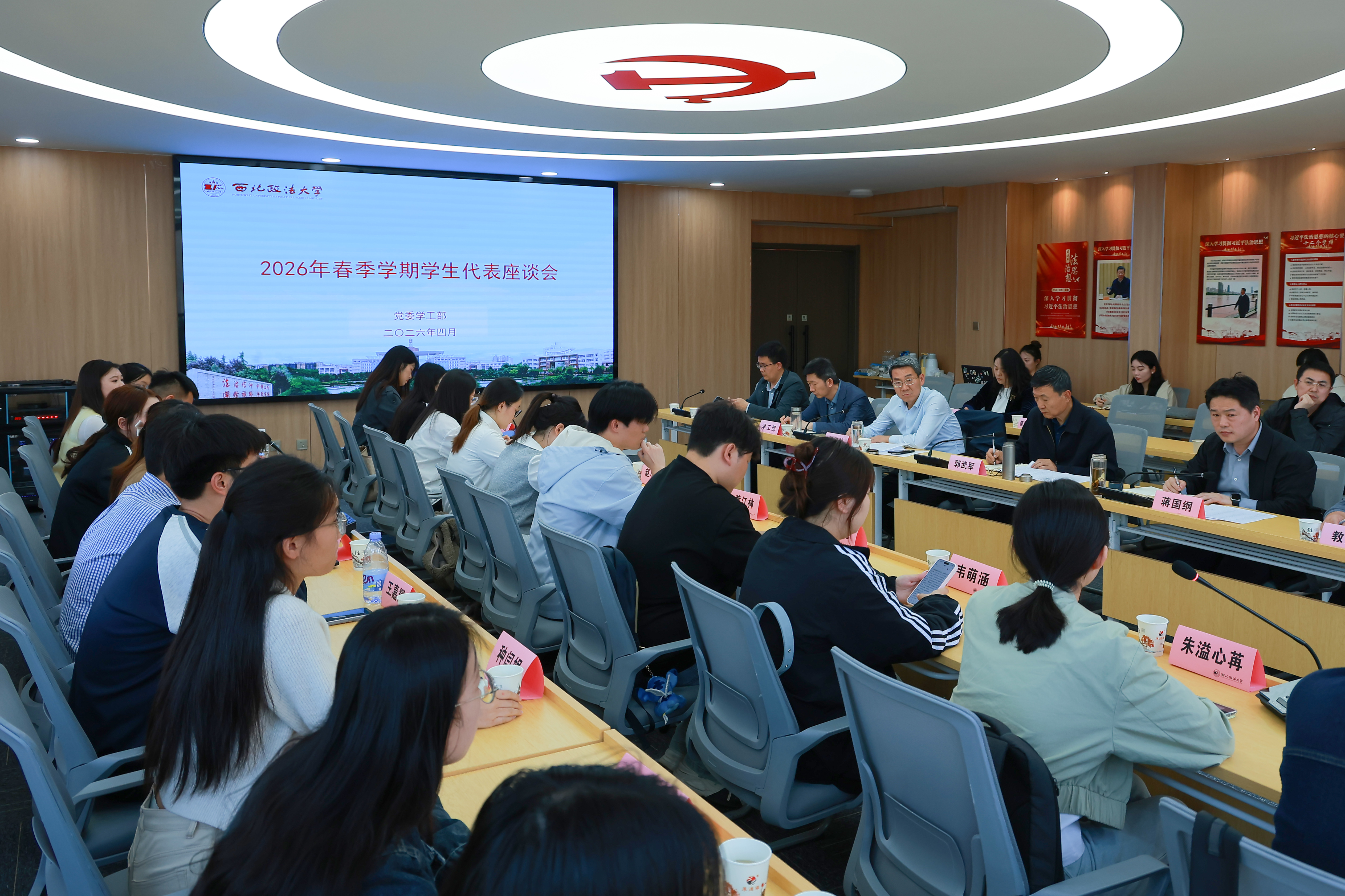 4月9日下午,我校在长安校区“一站式”学生成长发展中心召开2026年春季学期学生代表座谈会。校党委副书记郭武军出席并讲话,各学院本科生、研究生代表以及学校相关职能部门负责人参加,学工部部长蒋国纲主持座谈会。