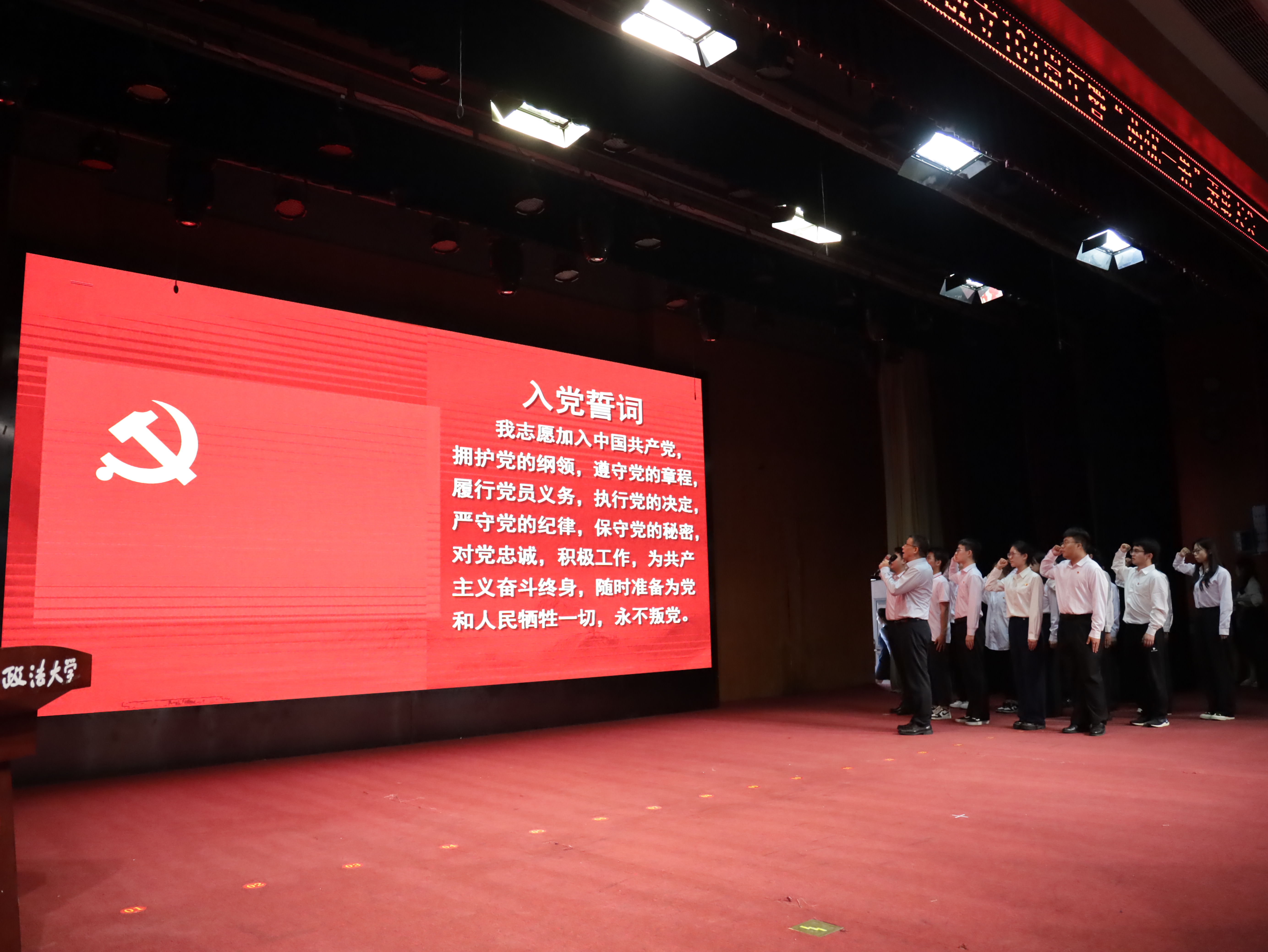 “我志愿加入中国共产党……”在赵万东的带领下,现场举行了庄严的新党员入党宣誓和老党员重温入党誓词仪式。全体党员面向党旗,高举右拳,铿锵有力地表达出新时代共产党员的责任与担当。