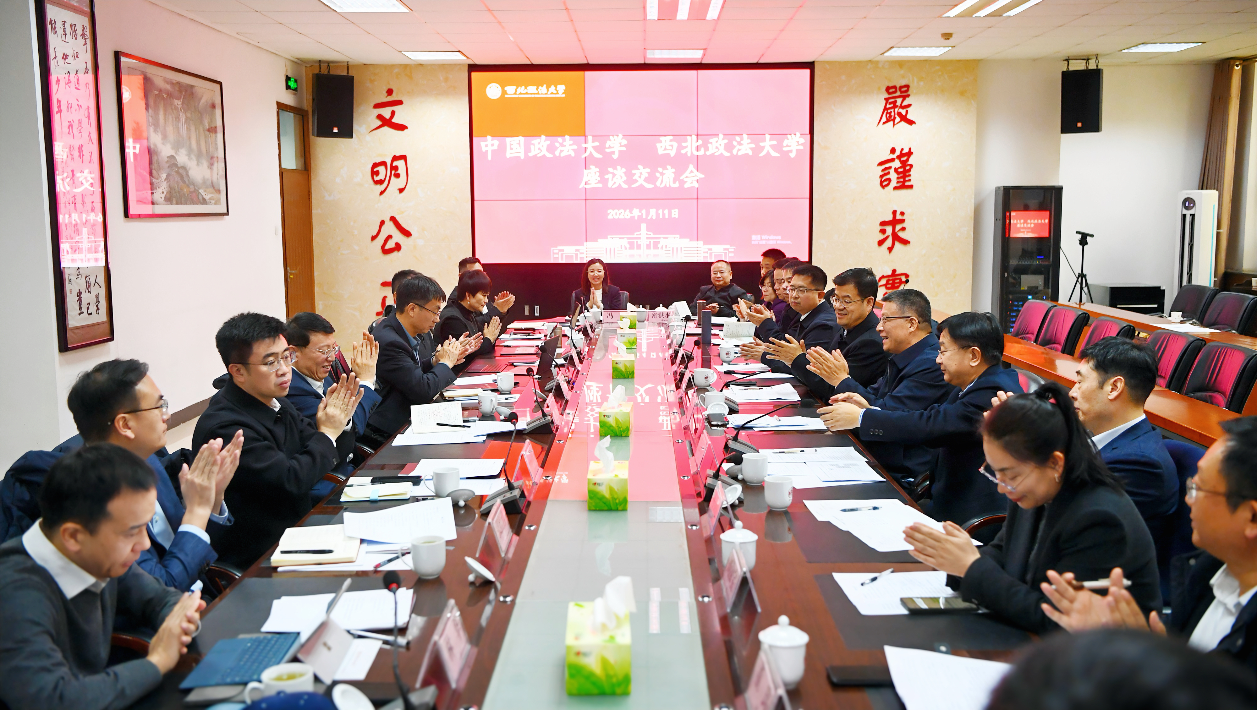 1月11日,中国政法大学党委书记姜泽廷、副校长卢春龙一行来校调研。校党委书记赵万东,副校长张荣刚、孙昊亮、常安出席座谈会,会议由校长范九利主持。