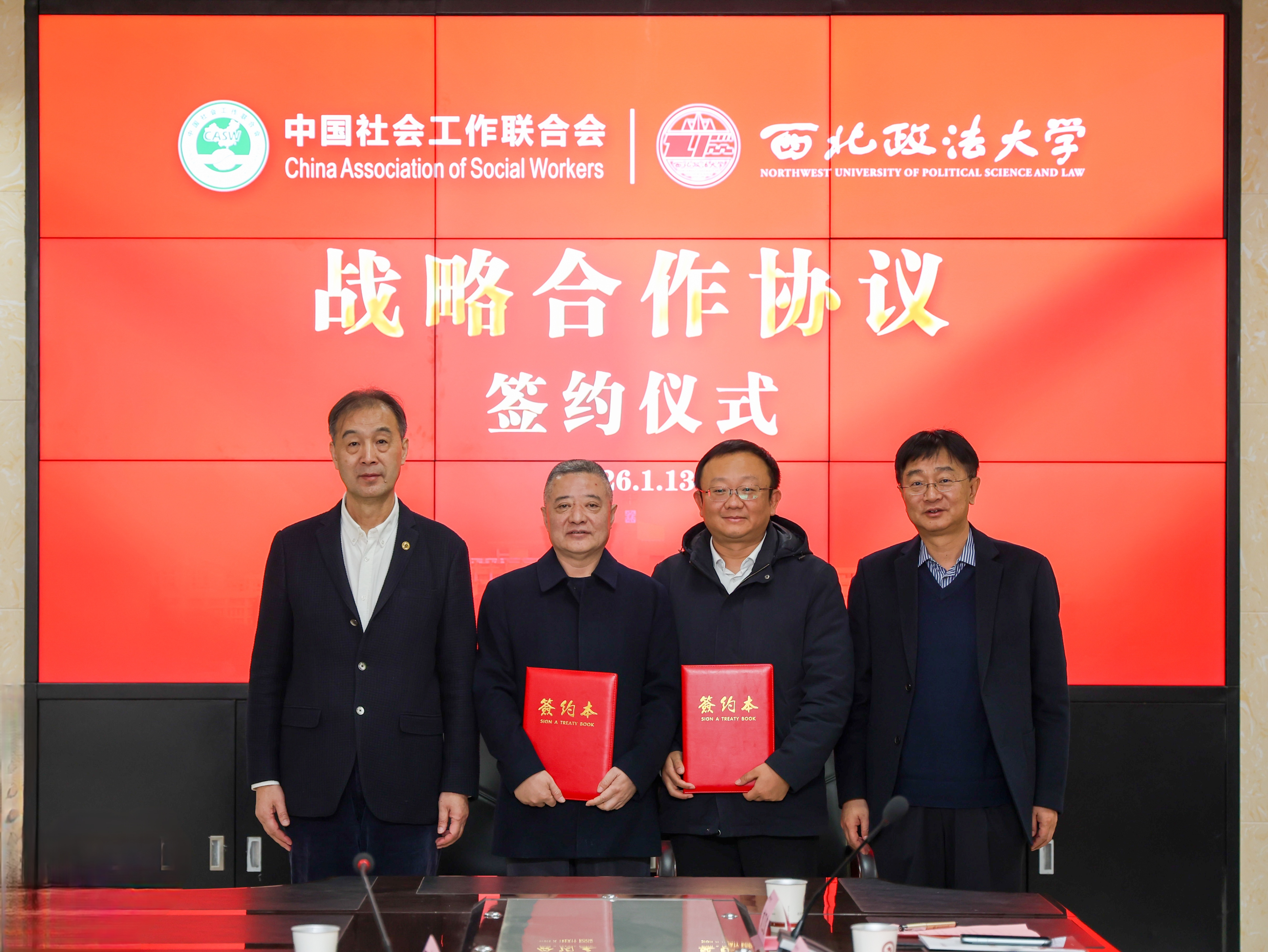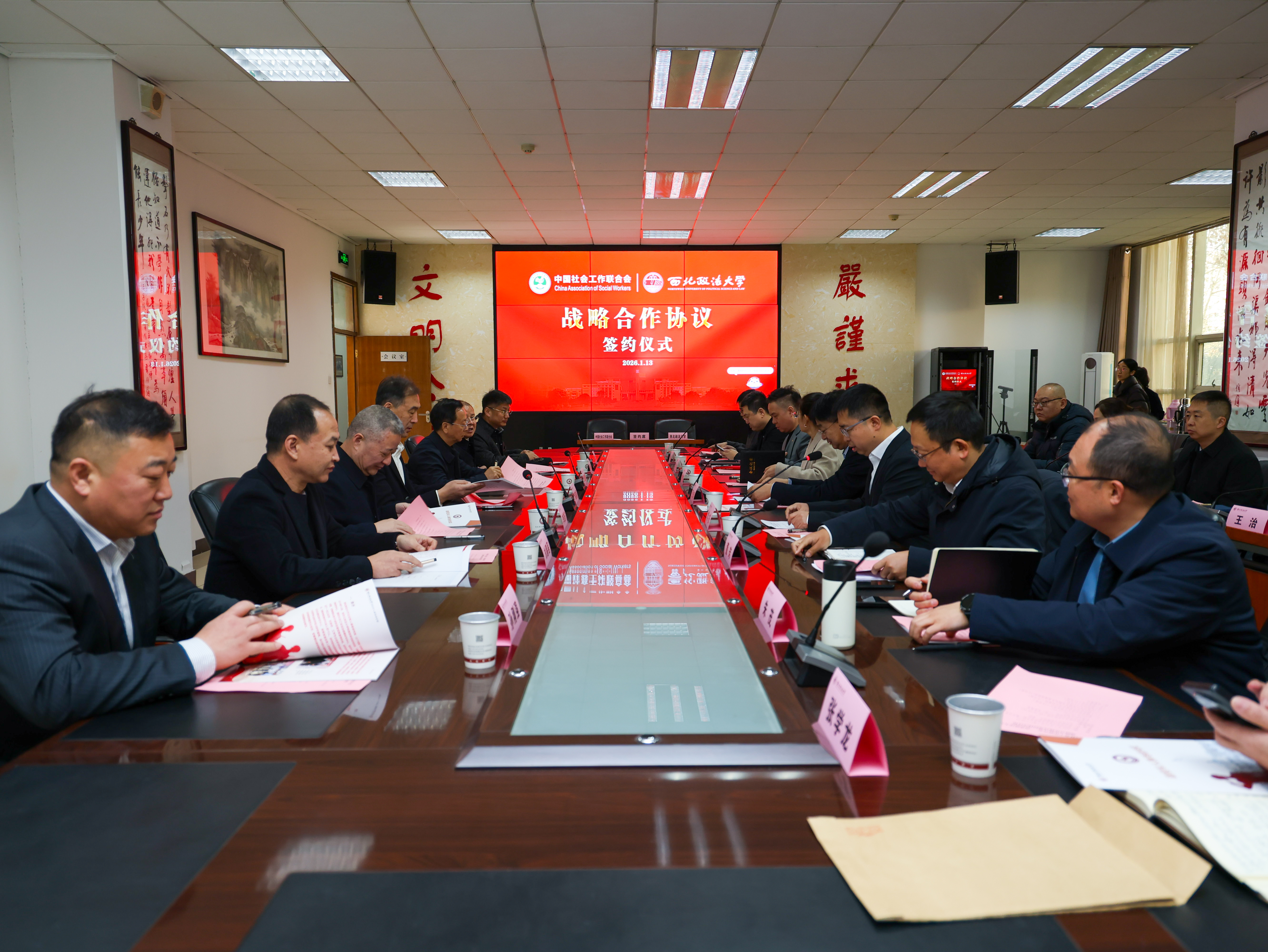 1月13日上午,我校与中国社会工作联合会战略合作协议签约仪式在长安校区举行。中国社会工作联合会副会长高建国、特约咨询专家戴建国,我校校长范九利出席仪式,副校长常安主持。