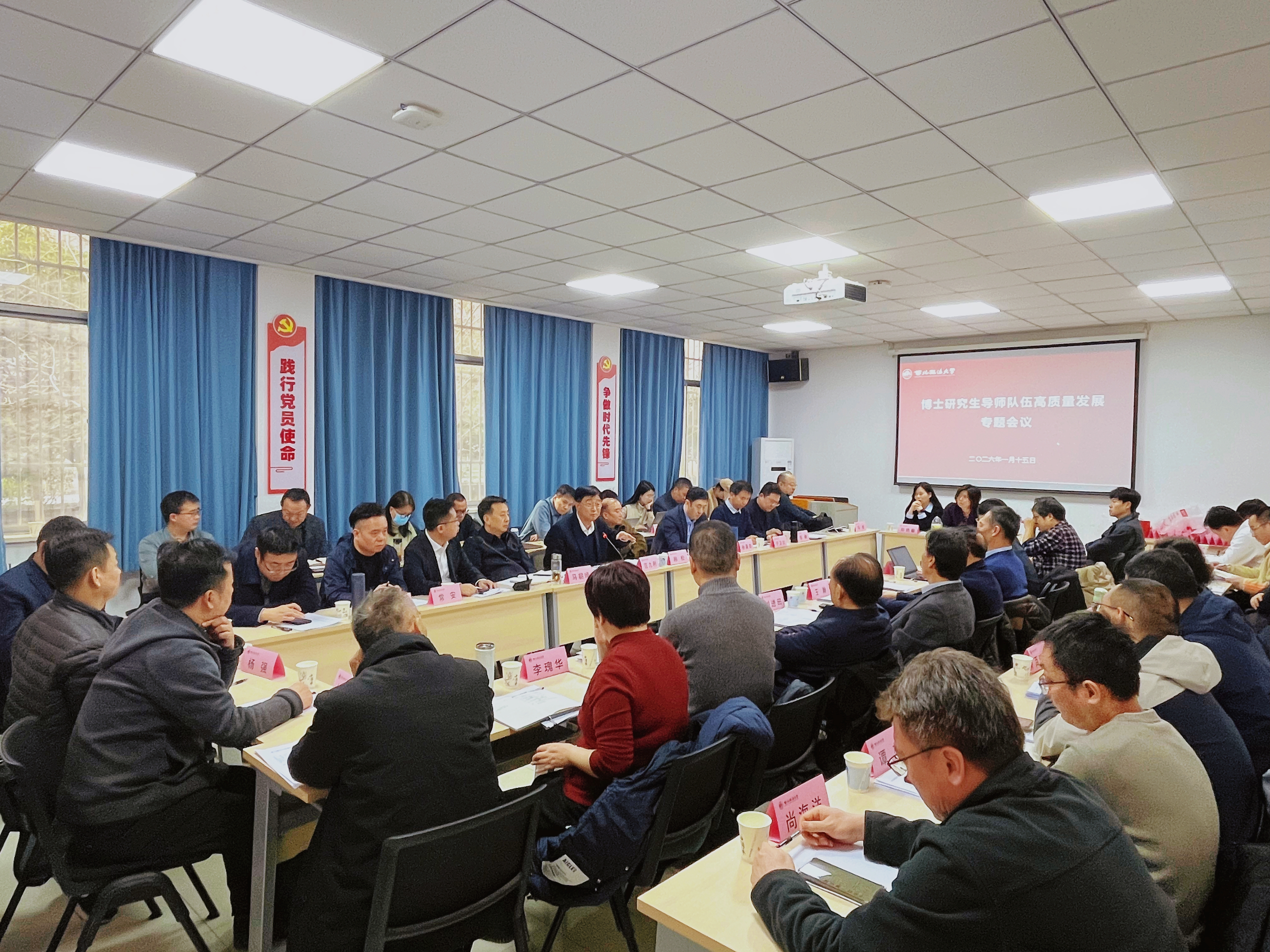 为深入推进博士研究生教育高质量发展,加强导师队伍建设,全面提升人才培养质量,1月15日上午,我校在雁塔校区召开博士研究生导师队伍高质量发展专题会议。校长范九利,副校长马朝琦、孙昊亮出席会议,各博士专业(方向)负责人、校内博士研究生导师及发展规划与学科建设处、研究生院、科研处等部门负责人参加会议。会议由副校长常安主持。