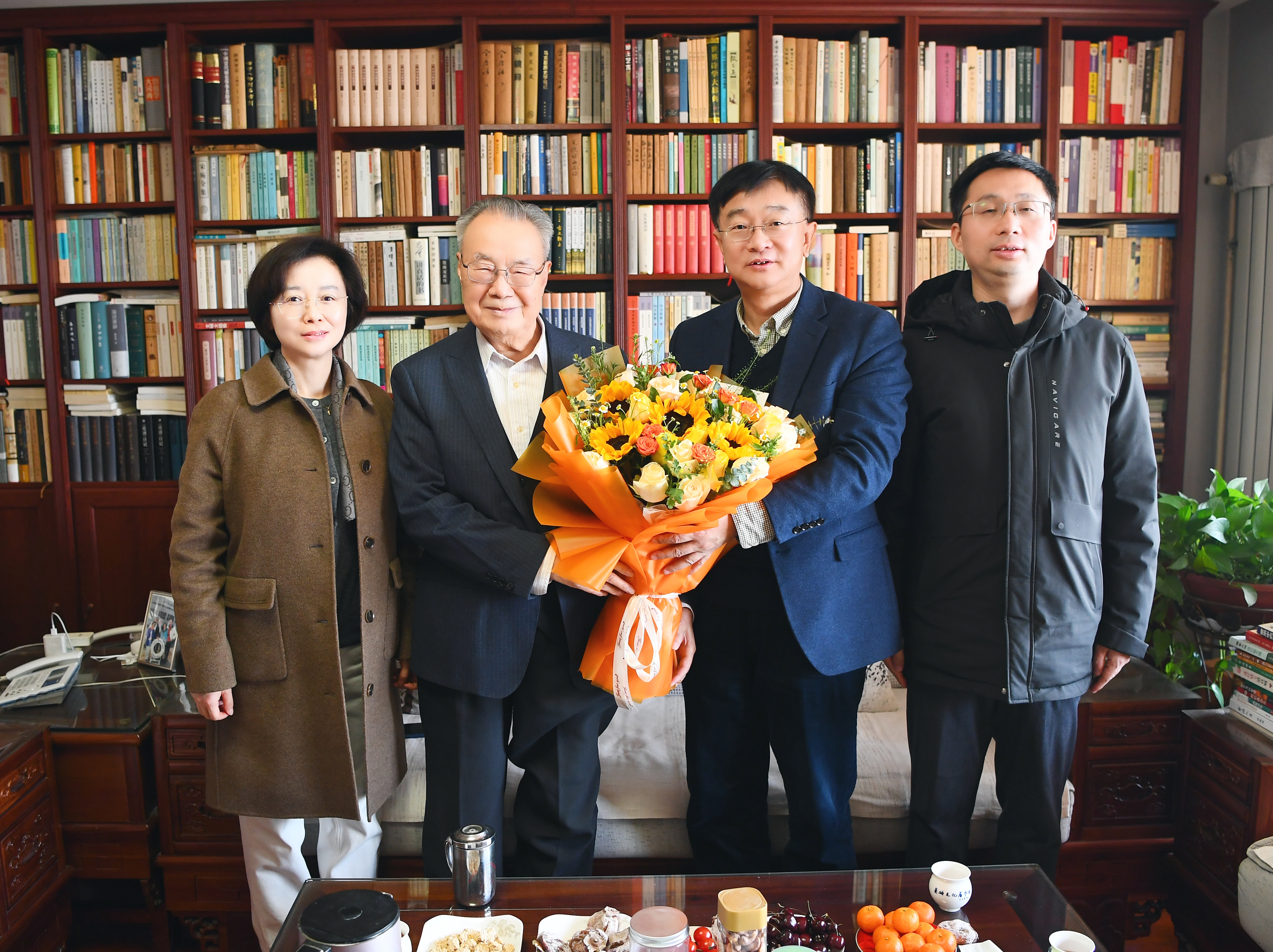 党政办、组织部、宣传部、统战部、巡察办、校工会、发展规划与学科建设处、教务处、研究生院、人事处、后勤保障处、离退处、信息网络中心等相关职能部门负责人陪同走访慰问。