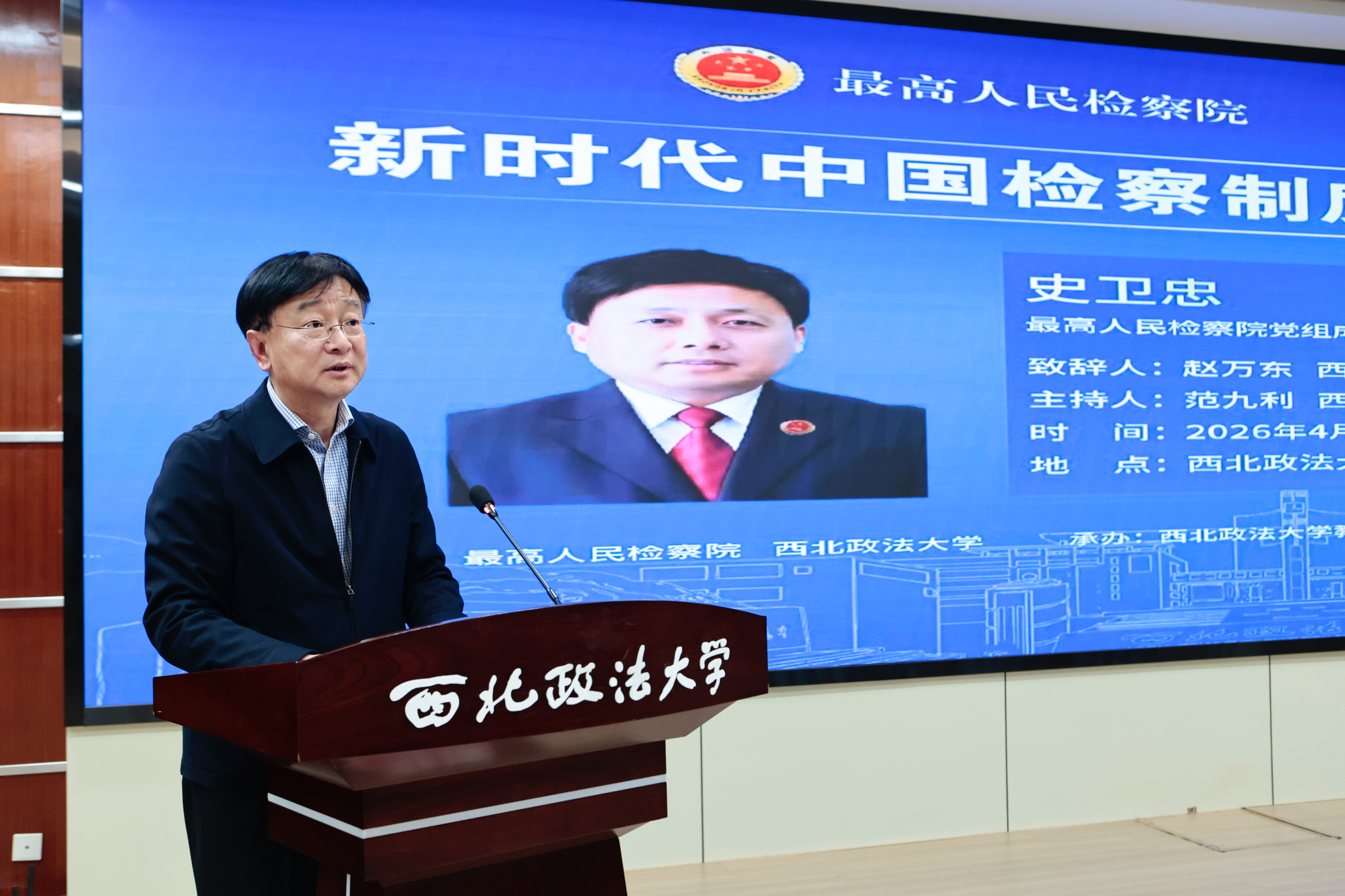 4月1日下午,最高人民检察院“检察实务专家进校园”系列讲座第14期在长安校区举办。最高人民检察院党组成员、副检察长、检察委员会委员、二级大检察官史卫忠作题为《新时代中国检察制度的传承与发展》讲座。校党委书记赵万东致辞,校党委副书记、校长范九利主持讲座。