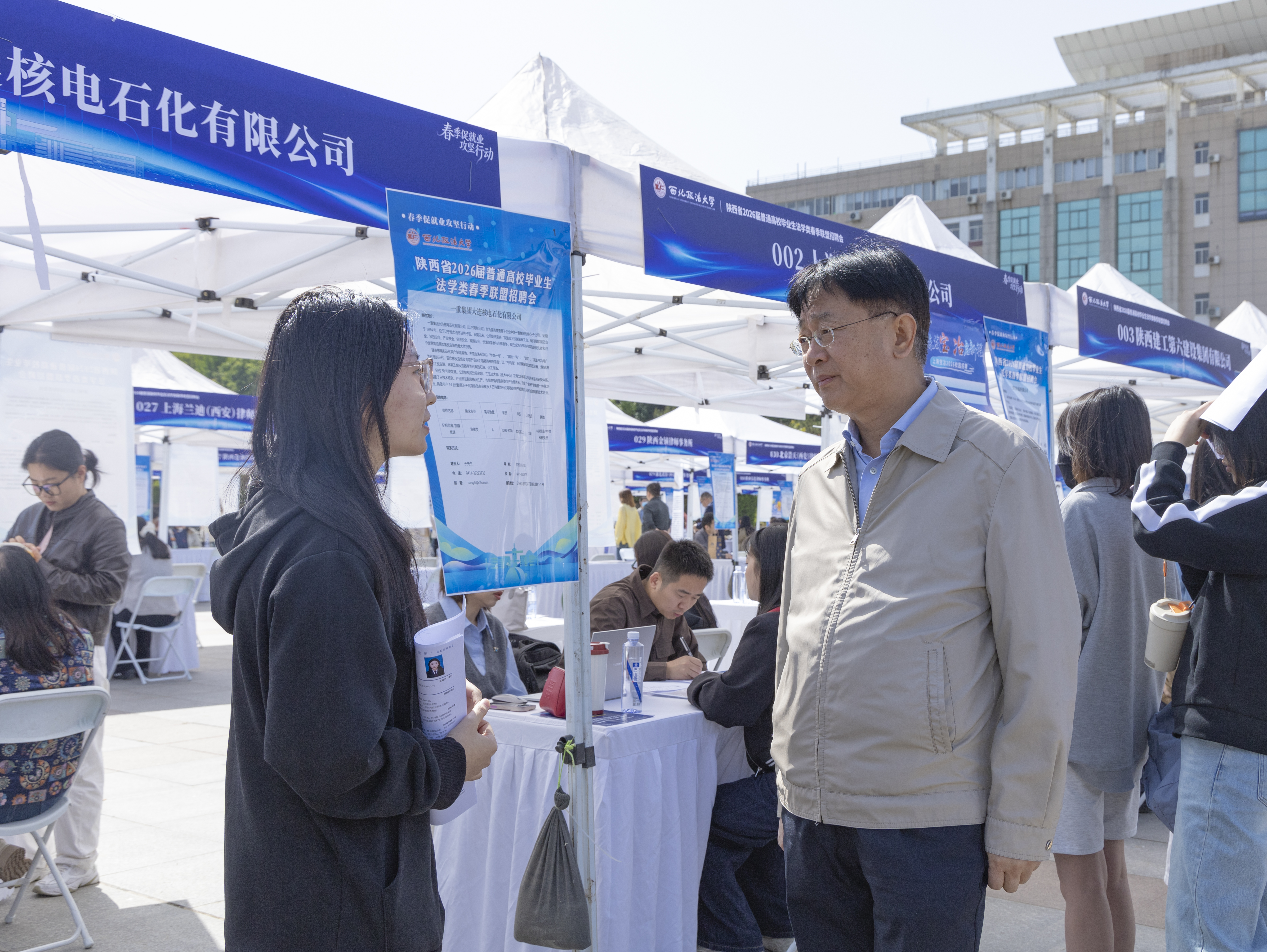4月23日,由我校主办,陕西省教育厅指导、陕西省学生就业与留学服务中心支持的“陕西省2026届普通高校毕业生法学类春季联盟招聘会”在我校长安校区天平楼广场成功举办。