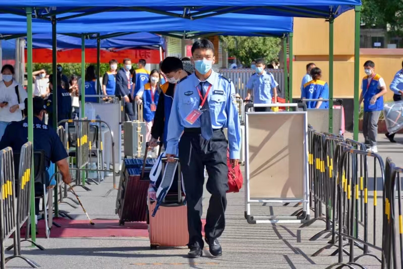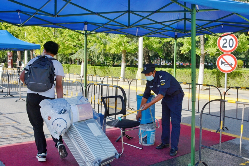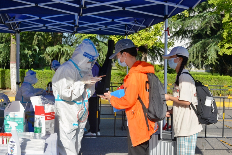 学校严格执行属地防疫部门和教育主管部门有关部署要求,结合学生所处地域情况和身体健康状况,坚持科学、精准、错峰、分类原则,扎实有序开展迎新工作。按照要求,每一位报到的新生需要单独入校,在完成健康码核验、测温、行李消杀、核酸检测等疫情防控有关流程后即可进入校园。