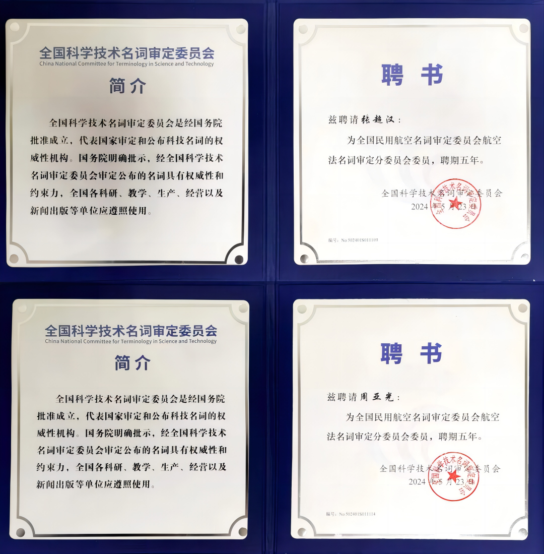 在分委会成立大会上,中国民航大学校长、全国民用航空名词审定委员会主任委员丁水汀,全国科学技术名词审定委员会事务中心副主任张晖,全国民用航空名词审定委员会委员、航空法分委会主任委员王瀚教授共同为受聘航空法分委会的委员颁发聘书。我校涉外法治研究中心副主任张超汉教授和航空法治现代化协同创新中心副主任周亚光副教授受聘全国民用航空名词审定委员会航空法分委会委员,聘期五年。
