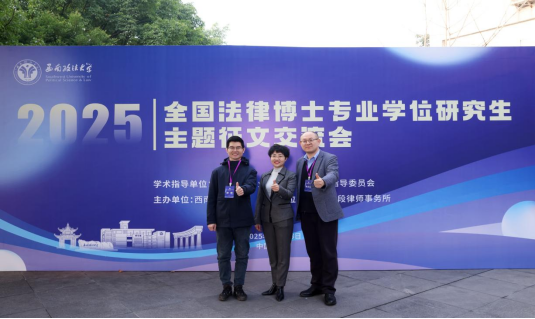 28日上午,全国法律博士专业学位研究生主题征文交流会在西南政法大学两江新区校区同步举行,会议围绕“新质生产力与中国式法治现代化”“社会治理法治化”“优化法治化营商环境”及“涉外法治和全球治理”四个前沿议题开展,旨在促进法学理论创新、破解法治实践难题,为法治人才培养和学科发展注入新活力、提供新动力。董正及法律博士研究生赵敏、郭靖分别作交流发言。