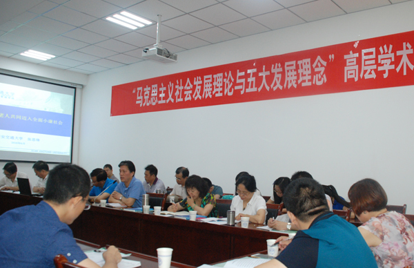 我校副教授、陕西省马克思主义研究会副理事长贺新宇主持研讨会第一阶段主题发言。我校文化与价值哲学研究院院长、陕西省马克思主义研究会理事长刘进田教授做了题为《五大发展理念与价值的哲学自觉》的发言,他认为五大发展理念是价值的本体论自觉,是价值的认识论自觉,是价值的辩证法自觉,是价值的评价论自觉。西安交通大学教授、陕西省马克思主义研究会副理事长张思锋以《牵手失能老人,共享改革发展成果》为题,介绍了失能老人生存质量与照护状况,城乡老年人口养老方式与养老服务形式,认为牵手失能老人共享改革发展成果,是全面建成小康社会的重要内容。西北大学教授、陕西省马克思主义研究会常务理事王强以《中国梦与五大发展理念》为题,从社会发展理念、社会发展的动力系统、社会发展需分阶段以及发展侧重点方面做了阐释。省委党校万冬冬博士以《中国共产党发展理念的历史演进与理论创新》为题,以历史演进为视角提炼了理论创新。西北大学教授、陕西省马克思主义研究会副理事长许门友对以上专家发言做了点评。