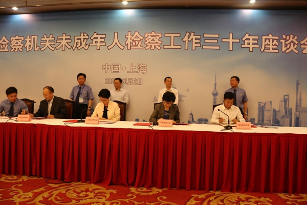 6月2日,最高人民检察院在上海召开全国检察机关未成年人检察工作30年座谈会,最高人民检察院孙谦副检察长主持会议,曹建明检察长发表重要讲话。 贾宇校长应邀参加并与最高人民检察院签署战略合作框架协议,在未成年人检察理论研究和实践探索方面开展科研合作。