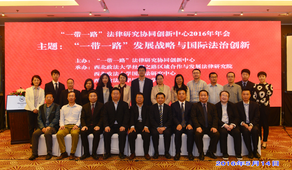5月14日,“一带一路”法律研究协同创新中心在西安隆重召开以““一带一路”倡议与国际法治创新”为主题的2016年年会。本届年会是2016丝绸之路国际博览会暨第20届中国东西部合作与投资贸易洽谈会系列活动的重要组成部分,由西北政法大学丝绸之路区域合作与发展法律研究院、西北政法大学国际法研究中心、西北政法大学国际法学院联合承办,西北政法大学国际法学院院长刘亚军教授主持会议。来自西北政法大学、武汉大学、对外经济贸易大学、中国政法大学、华东政法大学、西南政法大学、中南财经政法大学、重庆大学、甘肃政法学院、上海政法学院等成员单位的高校校长、教授参会。