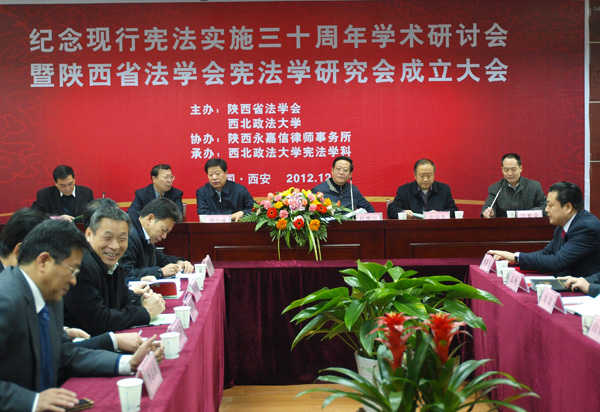 12月4日上午,由陕西省法学会与我校共同主办的“纪念现行宪法实施三十周年学术研讨会暨陕西省法学会宪法学研究会成立大会”在我校雁塔校区隆重召开。