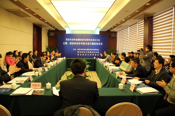 12月17日,“西安市法学会国际经济法研究会成立大会暨西安的对外开放与当代国际经济法主题研讨会”在西安唐华宾馆珠光厅隆重举行。成立大会选举产生了西安市法学会国际经济法研究会的领导机构,中国国际私法学会副会长、西北政法大学副校长、博士生导师王瀚教授当选为西安市法学会国际经济法研究会会长,西北政法大学国际法学院院长李万强教授、西北政法大学国际法学院副院长刘亚军教授、西安市中级人民法院副院长杜豫苏、西安市律师协会会长梁国安律师、政协西安市委海外联络委员会主任成丽娟、民航西北管理局政策法规处处长朱勇民、西北大学法学院副院长曾加教授等18位学术界和实务界的专家学者当选为西安市法学会国际经济法研究会副会长。