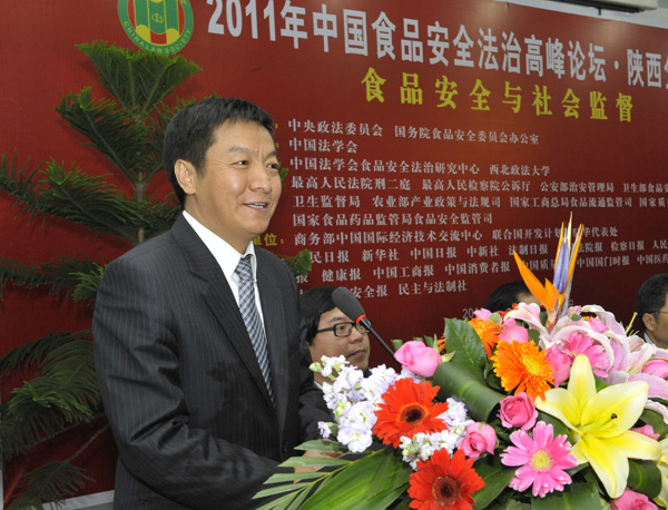 陕西省商洛市副市长黄思光同志致辞,黄思光同志介绍了商洛市食品安全相关工作的经验,着重介绍了商洛市镇安县食品安全有奖举报制度的相关情况。