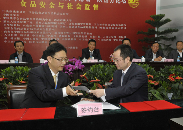 最后,中国法学会食品安全法治研究中心与西安分中心签订“食品安全有奖举报制度研究”部级课题委托协议。