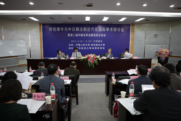 9月21日至25日,“传统律令与中日韩法制近代化国际学术研讨会”在我校雁塔校区成功举行。同时,全国第二届法学名家论坛系列活动在我校也拉开序幕。来自日本早稻田大学、一桥大学、庆应义塾大学,韩国庆北大学、朝鲜大学釜山大学、亚洲大学、崇实大学和北京大学、中国人民大学、华东政法大学、中国社会科学院、湘潭大学、杭州师范学院、上海师范大学的22位法律史专家,以及我校法律史学科教师参加了会议。校长贾宇教授会见了与会的各国专家并座谈。