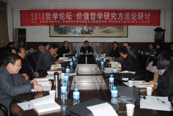 2010年11月14日上午,陕西省哲学学会2010哲学论坛:价值哲学价值方法论研讨会在西北政法大学雁塔校区大会议室隆重举行。会议举行了以价值哲学研究方法论研讨问题研究为主题的学术会议。研讨会由陕西省哲学学会、西北政法大学马克思主义教育研究院、西北政法大学马克思主义研究所共同主办。陕西省各高校、党校、出版社等30多名专家学者参加了会议。会议由陕西省哲学学会会长刘本炬教授,副会长王宏波教授、张强教授分别主持。