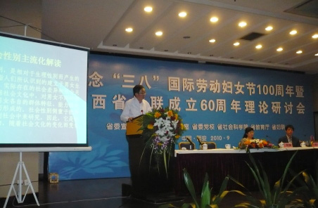 2010年9月28日,由中共陕西省委宣传部、省委党史研究室、省委党校、省社会科学院、省教育厅、省妇女联合会联合举办的 “纪念‘三八’国际劳动妇女节100周年暨陕西省妇联成立60周年理论研讨会”在西安成功举行。来自省内外从事妇女与社会性别理论及相关学科研究的专家学者、妇女与其他社会公益团体的代表及相关部门的负责人等80多人参加了会议。我校民商法学院张伟副教授及民商法专业婚姻法方向的七位研究生应邀参会,大会由省妇联副主席周玉峰女士主持。