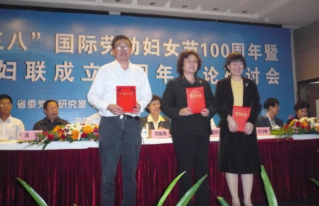 中共陕西省委宣传部、省委党史研究室、省委党校、省社会科学院、省教育厅、省妇联的有关领导莅临会议,首先由省妇联刘丽鸽主席致辞,之后举行颁奖仪式,中共陕西省委宣传部领导宣读了“纪念‘三八’国际劳动妇女节100周年暨陕西省妇联成立60周年理论研讨会”《获奖论文的通报》,并由莅临会议的各位领导向获奖作者颁发了荣誉证书。本次征文活动中,西北政法大学张伟副教授的论文“社会性别主流化视角下的家政工社会与法律保护分析”荣获一等奖。