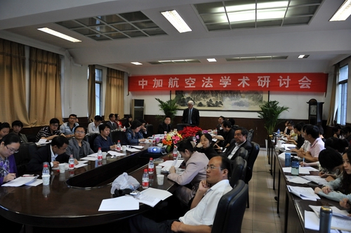 西北政法大学国际法学院的“航空法学术研讨周”活动在2010年5月12日下午拉开了帷幕,来自加拿大麦吉尔大学(Mc Gill University)的Dempsey教授在我校二楼会议室给大家做了题为“International Air Carrier Liability for Death & Personal Injury”的学术讲座。国际法学院邀请了许多研究航空法的名家教授参与本次研讨会的活动,其中包括:民航干部学院的刘伟民教授、西北工业大学的肖周录教授、西北大学法学院曾加教授、著名律师事务所主任崔建民同志。西北政法大学副校长王瀚教授,国际法学院党委书记李燕副教授、副院长刘亚军副教授,王秀梅副教授、孙尚鸿副教授、刘萍副教授、崔相龙老师以及多位研究航空法方面的博士都参加了本次研讨会。本次研讨会由刘亚军副教授主持,由潘俊武副教授担任翻译。