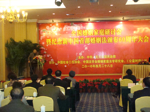 今年5月1日是新中国首部婚姻法颁布实施60周年纪念日。4月28日,由民政部主办的全国“婚姻家庭研讨会暨纪念新中国首部婚姻法颁布60周年大会”在北京举行。大会论文获奖作者、高等院校与研究机构的专家学者、实务工作者及民政系统代表180余人参加了会议。西北政法大学民商法学院张伟副教授、民商法专业婚姻法方向08级研究生段鲜红同学应邀参加了此次会议。