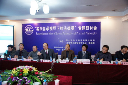 2009年11月28日,西北政法大学刑事法学院法学理论学科和《法哲学与法社会学论丛》编辑部在西安航天宾馆举行“实践哲学视野下的法律观”专题研讨会。共有50余名学者和学生参加了这次专题研讨会。中国政法大学郑永流教授、北京理工大学谢晖教授、西北政法大学严存生教授、杨宗科教授、刘进田教授、李其瑞教授、朱继萍教授、刘治斌教授、穆赤•云登嘉措教授等出席此次会议。