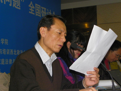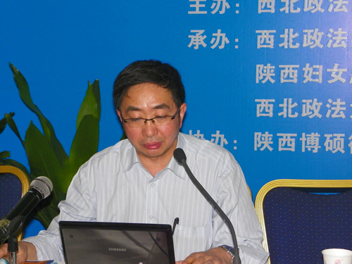 第一单元的主题是结婚制度与夫妻关系,由西北政法大学民商法学院高在敏教授主持,中国法学会婚姻法学研究会副会长、北京大学法学院马忆南教授、福建省政法管理干部学院副院长吴国平教授、甘肃政法学院冯乐坤副教授分别作主题发言,夏吟兰教授作点评。