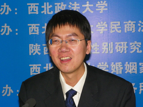 李秀华教授作了“论婚姻调解制度”的发言。叶名怡博士分析了当下备受关注的离婚案件中三类特殊共有财产分割问题,提出了相关建议和解决方案。刘琪法官作了“法院在审理婚姻家庭纠纷中存在的问题及思考”的发言。他梳理和介绍了2002年——2009年9月西安市两级人民法院婚姻家庭纠纷一审案件的相关统计数据,分析了目前存在问题的主要领域、具体表现及深层原因。陈凌云博士分析了关于离婚诉讼中按揭房屋分割的法律适用问题。她认为应从物权变动情况和维护两性在家庭中的平等地位出发,综合按揭房屋多种类型,最终确定房屋权属以及增值部分的分割。李佳律师探讨了一方按揭房屋在离婚时的归属认定问题。