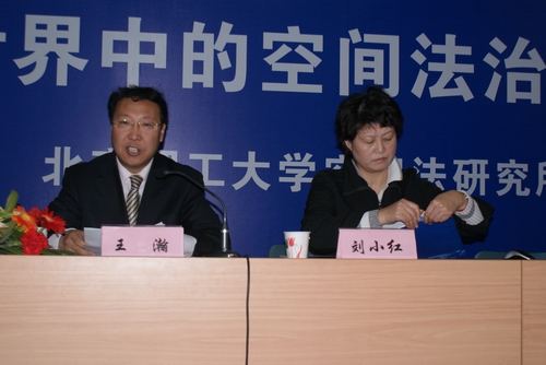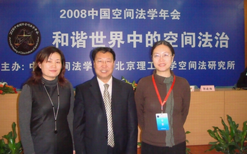 2008年12月20日,中国空间法学会2008年年会在北京理工大学国际教育交流中心隆重召开,西北政法大学王瀚副校长与国际法学院王秀梅副教授、刘萍副教授应邀参加会议。这次盛会由中国空间法学会和北京理工大学空间法研究所承办,会议主题是“和谐世界中的空间法治”。本次会议嘉宾云集,北京理工大学党委副书记侯光明、工业和信息化部装备司副司长李巍、国际航天局外事司副司长王克然、亚太空间多边合作组织副秘书长刘小红、美国密西西比大学国家遥感探测与空间研究中心主任Joanne Irene Gabrynowicz教授、外交部条法司二处处长郭晓梅、中国空间法学会秘书长戚永亮、北京理工大学法学院书记庞海芍、北京理工大学空间法研究所所长李寿平、中国政法大学国际法学院党委书记宣增益、哈尔滨工业大学法学院院长赵海峰、北京航空航天大学法学院院长龙卫球、湖南师范大学法学院院长李先波、上海航天研究院总工程师张文祥、卫星应用协会秘书长吴继云、战略安全中心主任陶加渠等参加了大会。