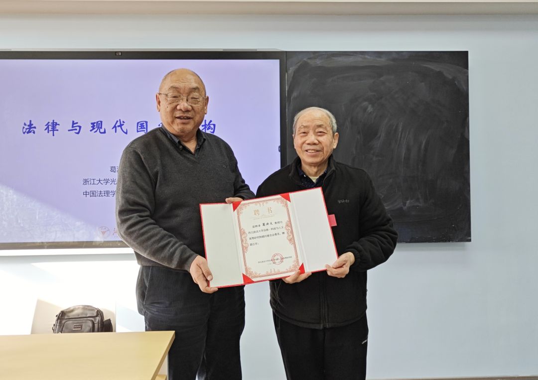 讲座伊始,严存生向葛洪义颁发聘书,聘请葛洪义作为西北政法大学法律、科技与人文高等研究院顾问委员会委员。