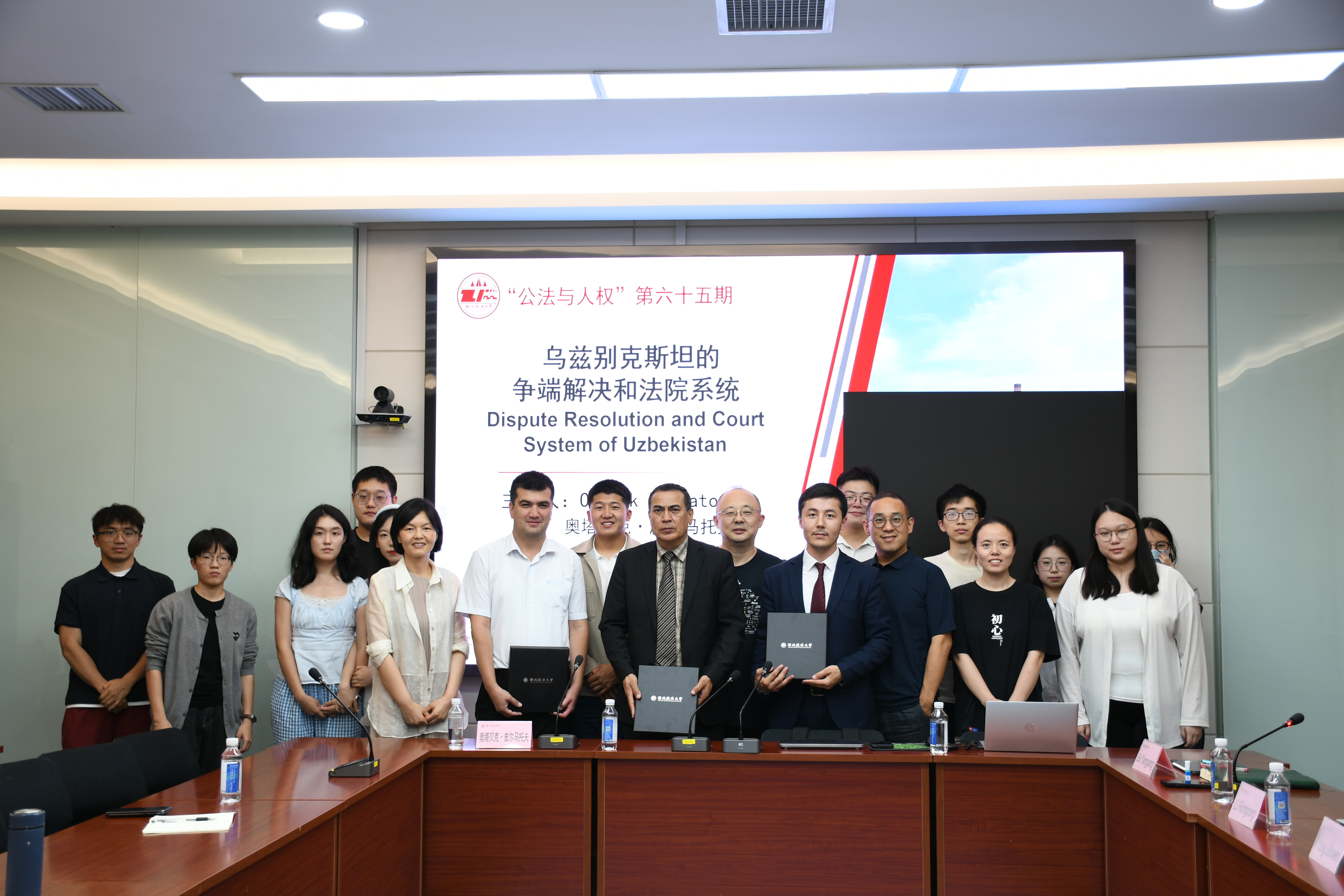 6月30日晚,由我校人权研究中心、国际交流与合作处、国际教育学院、国际法学院(国际仲裁学院)、“一带一路”营商环境研究院和涉外法治研究中心联合主办的“公法与人权”讲坛在雁塔校区人权研究中心会议室举行。乌兹别克斯坦塔什干国立法律大学教授多尼约尔贝克・达夫罗诺夫、副教授奥塔贝克・皮尔马托夫分别主讲《国际移民与人权》《乌兹别克斯坦的争端解决和法院系统》,人权研究中心教授、博士生导师步洋洋主持。人权研究中心执行主任马成教授,国际法学院(国际仲裁学院)副教授、“一带一路”营商环境研究院执行院长贺小丽,人权研究中心讲师杨博文博士、李荣荣博士参会。