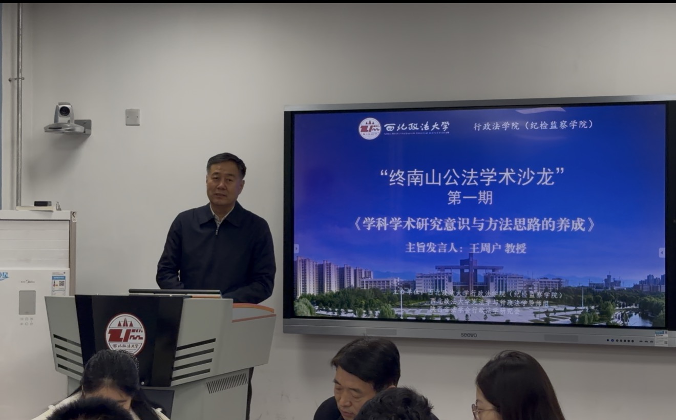 1月19日,行政法学院(纪检监察学院)“终南山公法学术沙龙”(第一期)在我校长安校区举办。本期沙龙以“学科学术研究意识与方法思路的养成”为主题,中国法学会行政法学研究会副会长、我校二级教授王周户受邀作主旨演讲。院长李大勇教授主持,徐翔副教授、吴腾讲师,李少煊、白杨博士生担任与谈人,学院40余名师生代表参与研讨交流。