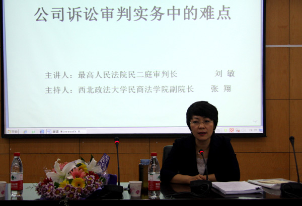 受我校民商法学院之邀,10月16日19时30分,在雁塔校区研究生综合楼四楼多功能报告厅,最高人民法院民二庭刘敏法官为我校师生作了题为《公司审判实务中的难点》的学术报告。