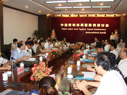 2006年8月21日至22日,由国际劳工权益基金会资助、西北政法学院经济法学院承办的中国劳动法典型案例研讨会(国际)在位于陕西宝鸡的高新商务酒店举行。来自陕西省工会系统、陕西省律师协会及陕西省法律援助中心的工会法律干部、资深律师代表共30人参加了研讨与培训。本次研讨会聘请全国著名的劳动法专家安徽大学李坤刚教授、西北政法学院副校长郭捷教授、经济法学院劳动与社会保障法教研室主任谢德成教授等全国知名劳动法学者主讲。
