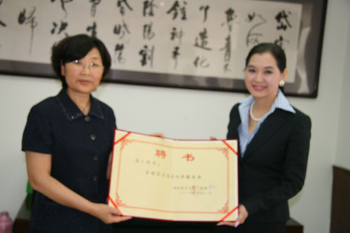 郭捷副校长代表学校向万以娴博士颁发兼职教授聘书