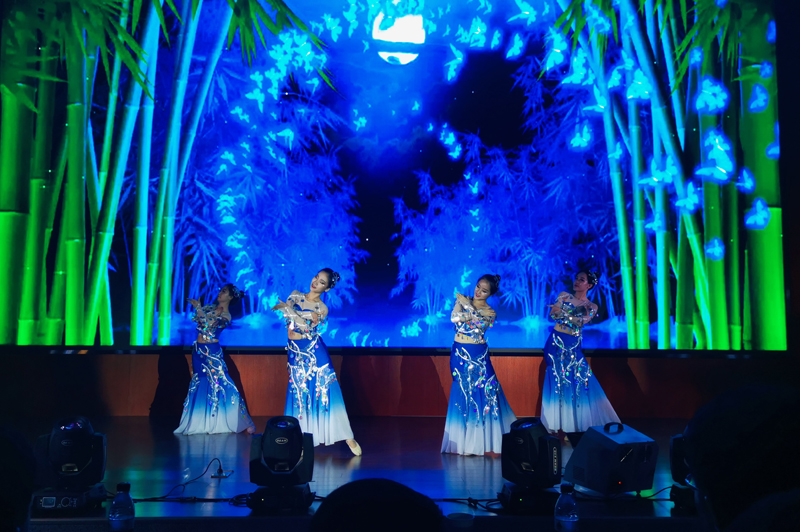 《月光下的凤尾竹》葫芦丝独奏,悠扬的苼调充满诗情画意,我们仿佛看见凤尾竹丛中美丽的姑娘正与阿哥互诉衷肠。傣族姑娘与《月亮》融为一体,用柔软的肢体向我们娓娓道来竹楼里那无尽的思念。“世上有朵美丽的花,那是青春吐芳华……”一曲《绒花》愿我们都能坚定信念,喷发出理想的火花。轻快短小的新疆民歌——《青春舞曲》,听来开朗奔放。在《关中情》唢呐独奏高亢明嘹的音色中,关中大地之辽阔于眼前尽情展开,千年古都长安情油然而生。表演者在《百鸟朝凤》唢呐独奏中,娴熟地变幻百鸟争鸣之声,惟妙惟肖,让人感叹艺术的神奇魔力。钢琴与舞蹈的美妙结合使经典文化遗产《梁祝》迸发新的生机。《不忘初心 砥砺前行》的朗诵告诉我们,初心是什么,让我们坚信:铭记历史,不惧未来;砥砺前行,奋发图强。海浪、星空、烟波、落雨……二胡拉弹拨弦的技巧让一曲《大鱼》美好与伤感错落有致,又融合得完美无缺。