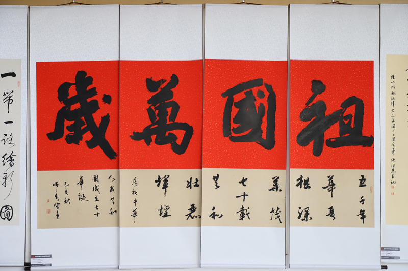 本次书画展围绕“庆祝中华人民共和国成立70周年”为主题展开,得到校内外书法家、书法爱好者的积极响应,书画展共收到百余幅作品,其中不乏诸多名家大作和许多书法爱好者的新秀之作。他们将对祖国的热爱诉诸笔端,用情和景展现了新中国70年的光辉岁月。作品内容丰富、主题鲜明、风格多样,一笔一划、一景一物,都饱含他们对祖国文化深深的崇敬之情、对伟大祖国浓厚的热爱之情。一幅幅构思巧妙、寓意深远的翰墨丹青描绘了祖国风雨兼程的70载,寄托着书法家们对党、对祖国、对时代的真挚情感。