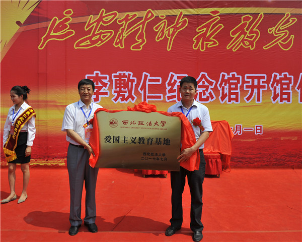 仪式上,贾宇与李晓龙共同为西北政法大学爱国主义教育基地挂牌,向广大师生宣扬我校老前辈优良品质,传颂我党光荣传统和奋斗精神。李平安在致辞中回顾李敷仁的光辉一生和对人民解放事业、党的教育事业、新闻事业作出的重大贡献,以及在我校办学历史上发挥的重要作用,高度赞扬其后人做了一件极具意义的大事。