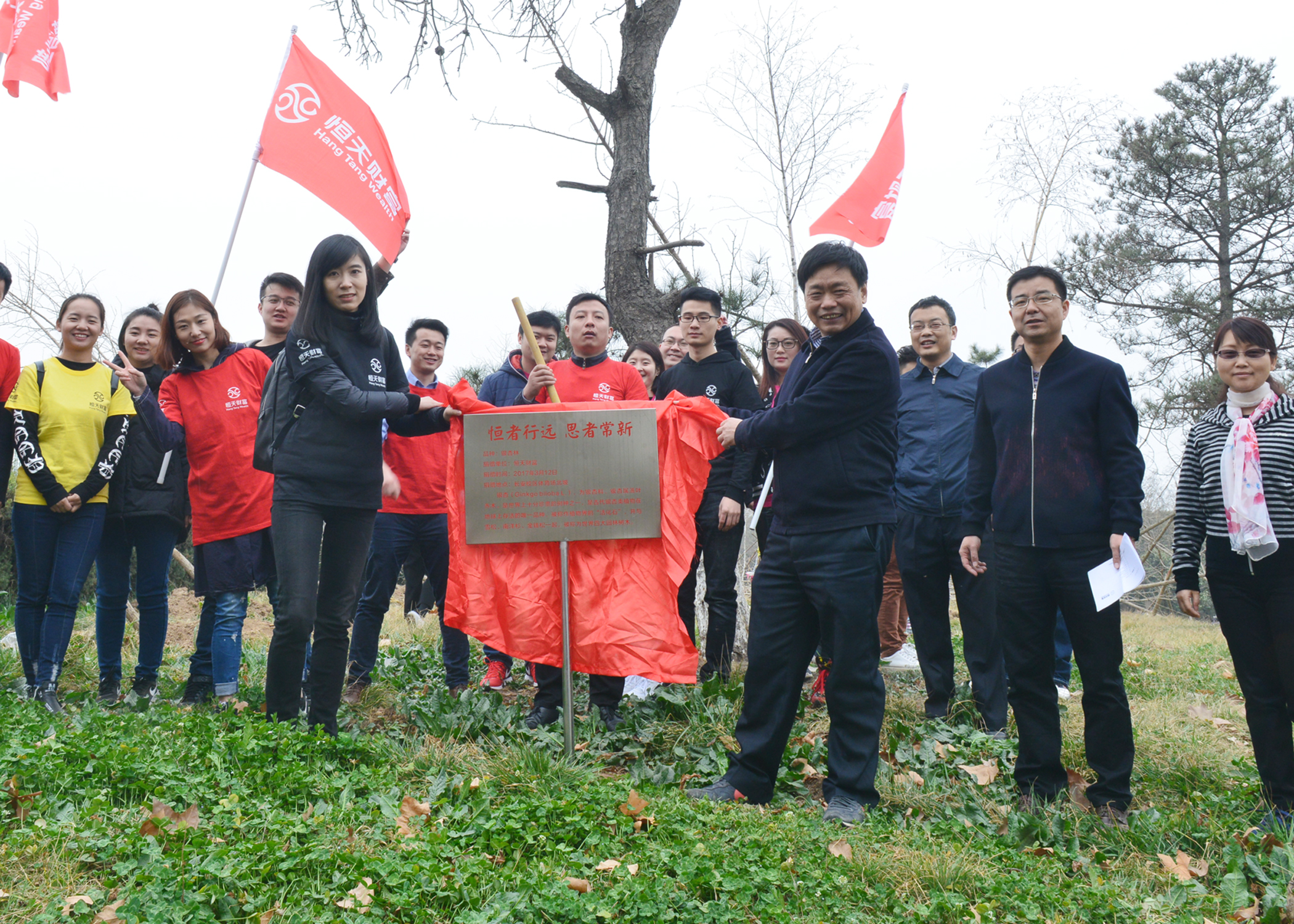 捐赠仪式结束后,到场领导和嘉宾合影留念。李平安、许多共同为捐赠牌揭幕。随后开始了热火朝天的植树活动,截止到上午11时, 130棵银杏树全部种植完成。