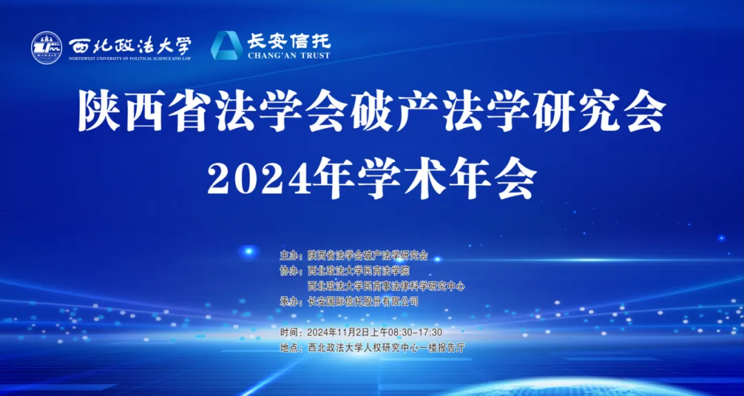 2024年11月2日,陕西省法学会破产法学研究会2024年学术年会在西北政法大学顺利举办。本次会议由陕西省法学会破产法学研究会主办,西北政法大学民商法学院、西北政法大学民商事法律科学研究中心协办,长安国际信托股份有限公司承办。本届学术会议共有来自破产法学研究会系统、政法系统、管理人机构、高校科研机构、企业等单位的100余位嘉宾围绕“执转破案件实践、执行与破产、信托制度与企业破产、破产管理人协会、新公司法和破产法修改关系、税务机关申请企业破产、执破融合中预重整程序、破产重整计划中的信托方案、破产重整程序中的合规、合并破产中的税务难点”等具体议题进行了深入研讨。